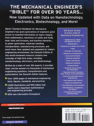 Solve any mechanical engineering problem quickly and easily with the world’s leading engineering handbook Nearly 1800 pages of mechanical engineering facts, figures, standards, and practices, 2000 illustrations, and 900 tables clarifying important mathematical and engineering principle, and the collective wisdom of 160 experts help you answer any analytical, design, and application question you will ever have.