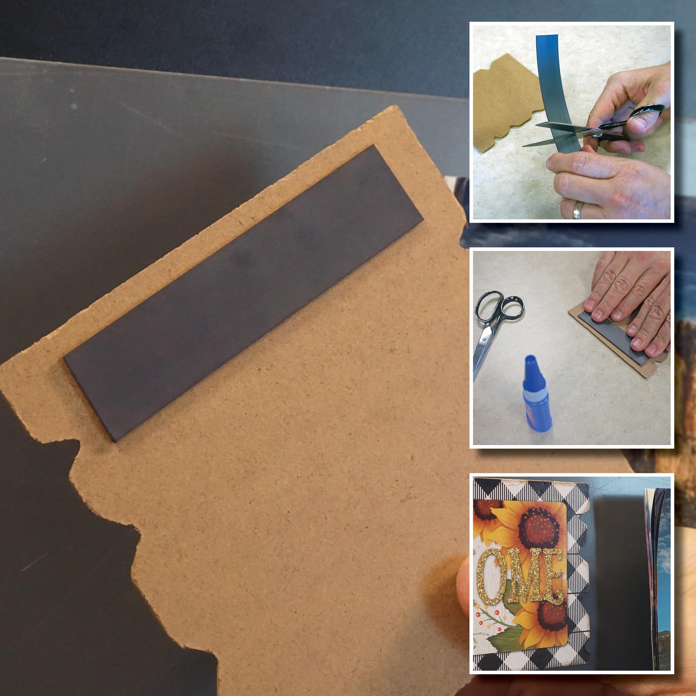 • Flexible magnet strip is magnetic on one side, attaches to flat or slightly curved steel surfaces, and is easily repositioned