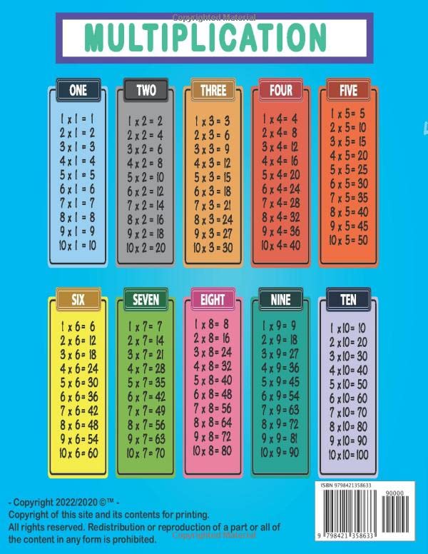 This book helps your child easily master multiplication multiplication Workbook of 100 pages and more – an excellent tool – for building confidence in arithmetic skills. – Record score and time to see improvements – Multiplication table – Multiplication chart – Consistent practice leads to results. It contains 100 exercises and a total of 6300 operations that will help your child master easily basic multiplication