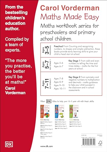 Help your child be the top of the class with the best-selling home-study series from Carol Vorderman Let Carol Vorderman help your child succeed in Maths. Maths Made Easy is one of Carol Vorderman’s series of workbooks packed with notes and tips to make learning about Maths easy and fun! Follow the exercises and activities with your child to strengthen their learning in school, then reward them with gold stars for their efforts. Each title contains a progress chart so your child can keep track of all the exercises they have completed and parents’ notes explain what children need to know at each stage and what’s being covered in the curriculum so you can support your child. This book features practise on percentages, the mean, median and mode of numbers, and work on plotting coordinates on a grid. Developed in consultation with leading educational experts to support curriculum learning, Maths Made Easy (previous ISBN 9781405363686) is a great way to improve your child’s maths skills – “the more you practise, the better you’ll be!” Carol Vorderman