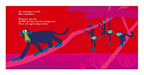 A trio of misbehaving, mango-loving monkeys have a close call as the creator of Don’t Worry, Little Crab gives readers a taste of vicarious mischief. Three little monkeys and their big monkey are sitting high on a branch in the forest canopy. “OK, monkeys! I’m off,”says the big monkey. “Remember . . . Whatever you do, do NOT go down to the mango tree. There are tigers down there.” Mmm . . . mangoes! think the little monkeys. They LOVE mangoes. Hmm . . . Maybe . . . maybe they could just look at the mangoes. That would be OK, right? With vivid colors, bold shapes, and his trademark visual humor, Chris Haughton is back with a deliciously suspenseful cautionary tale about pushing boundaries–and indulging your more impish side (when nobody is looking).