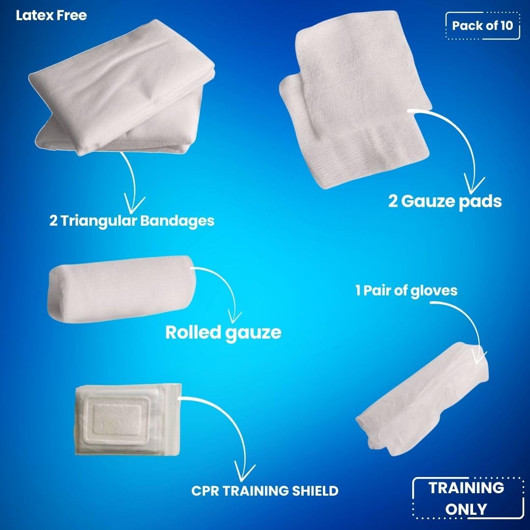 - Includes 10 individually packaged Student CPR & First Aid training kits