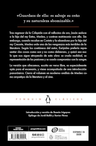 <> Tras regresar de la Colquide con el vellocino de oro, Jason seduce a la hija del rey Eetes, Medea, y contrae matrimonio con ella. Sin embargo, cuando recalan en Corinto y la abandona por la hija del rey Creonte, Medea urde una de las venganzas mas terribles de la literatura. Segun los coetaneos del autor, Euripides preferia representar <>, y quiza sea eso lo que nos sigue atrayendo de esta obra: su cruda realidad, su representacion de las pasiones y su osado compromiso con la sangre. La version que ofrecemos, escrita en verso libre, es especialmente apta para el escenario, y viene acompanada de una introduccion panoramica. Cierra el volumen un moderno analisis de Medea como arquetipo de la literatura y el cine. ENGLISH DESCRIPTION “Beware of her: her frown is wild and her nature abominable.” After returning from Colchis with the Golden Fleece, Jason seduces King Aeetes’ daughter, Medea, and marries her. However, when they arrive in Corinth and he abandons her for King Creon’s daughter, Medea plots one of the most terrible revenge stories in literature. According to the author’s contemporaries, Euripides preferred to present “things as they are and not as they should be,” and perhaps that is what continues to attract us to this work: its raw reality, its portrayal of passions, and its bold commitment to bloodshed. This version, written in free verse, is especially suitable for the stage and is accompanied by a panoramic introduction. This edition concludes with a modern analysis of Medea as an archetype in literature and film.
