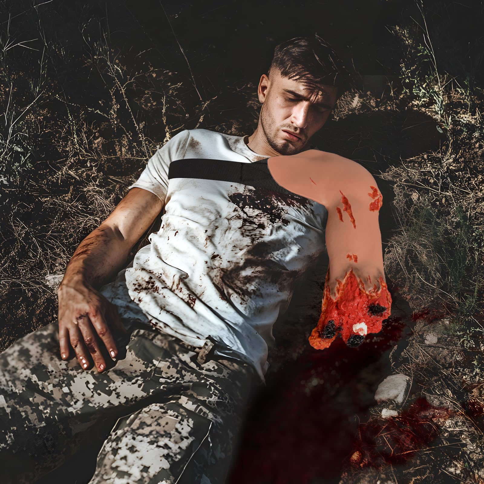- Highly Realistic Simulation: Our Wearable Tourniquet Wound Packing Arm model replicates a robust adult male arm with a blast injury, featuring red paint to simulate blood and blackened edges to represent burn effects, offering an authentic visual and tactile training experience.