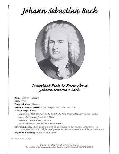 Perfect for classroom use, Meet the Great Composers Book 1 Activity Sheets contain profiles of each composer featured in Book 1 and are licensed for reproduction.