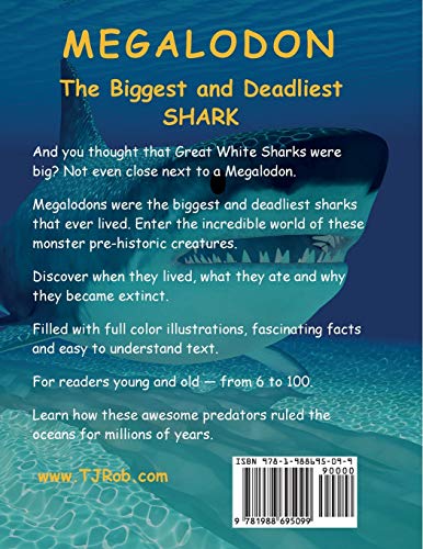 And you thought that Great White Sharks were big? Not even close next to a Megalodon. Megalodons were the biggest and deadliest sharks that ever lived. Enter the incredible world of these monster prehistoric creatures. Discover when they lived, what they ate and why they became extinct. Filled with full color illustrations, fascinating facts and easy to understand text. For readers – from ages 5 to 8 but readers up to 100 will enjoy this book! “…my children loved learning the facts about Megalodon Sharks and it kept them engaged and challenged. Definitely a great read and fun…” To learn how these awesome predators ruled the oceans for millions of years, buy your copy of Megalodon today! Book Contents: Discovering The World Around Us What was a Megalodon? When did Megalodons live? What do we know about them? What did they look like? Where did they live? How big was Megalodon? How much did a Megalodon weigh? How big was the mouth and jaw of Megalodon? Giant Teeth Serrated Teeth How many teeth did Megalodon have? Did a Megalodon lose its teeth? How powerful was Megalodon’s bite? What did Megalodons eat? How much did a Megalodon eat? What about baby Megalodons? What was the lifespan of a Megalodon? How do we calculate the age of a Megalodon? Why did Megalodons become extinct? Here is one possible explanation for Megalodon’s extinction Are there any Megalodons in the oceans today? Could there be any Megalodons living in our oceans today? Thanks for reading and other exciting Books