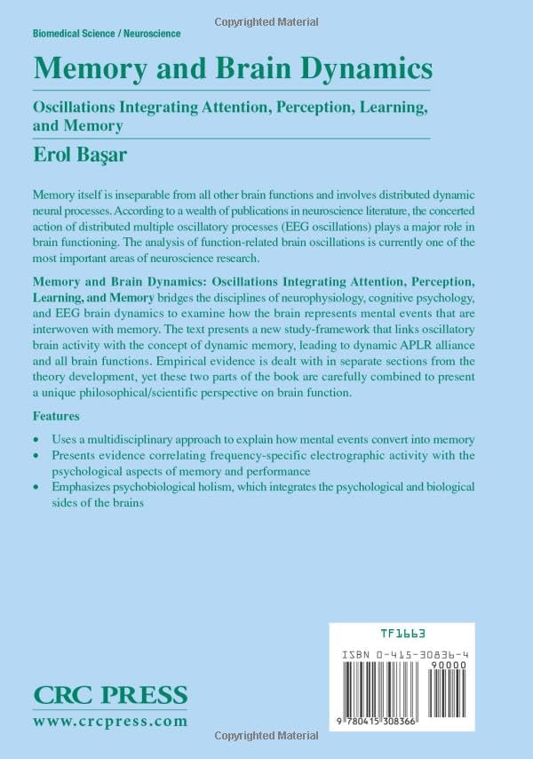 Memory itself is inseparable from all other brain functions and involves distributed dynamic neural processes. A wealth of publications in neuroscience literature report that the concerted action of distributed multiple oscillatory processes (EEG oscillations) play a major role in brain functioning. The analysis of function-related brain oscillations is currently one of the most important areas of neuroscience research. Memory and Brain Dynamics: Oscillations Integrating Attention, Perception, Learning, and Memory bridges the disciplines of neurophysiology, cognitive psychology, and EEG brain dynamics to examine how the brain represents mental events that are interwoven with memory. The book presents a new study-framework that links oscillatory brain activity with the concept of dynamic memory. In the main portion of the text, the memory is treated as an alliance of attention, perception, learning, and memory. Empirical evidence is dealt with in separate sections from theory development, yet these two parts of the book are carefully combined to present a unique philosophical/scientific perspective on brain function. Professor Erol Basar, Ph.D., is one of the pioneers emphasizing the importance of oscillatory brain dynamics for integrative brain function and memory since the 1970s.