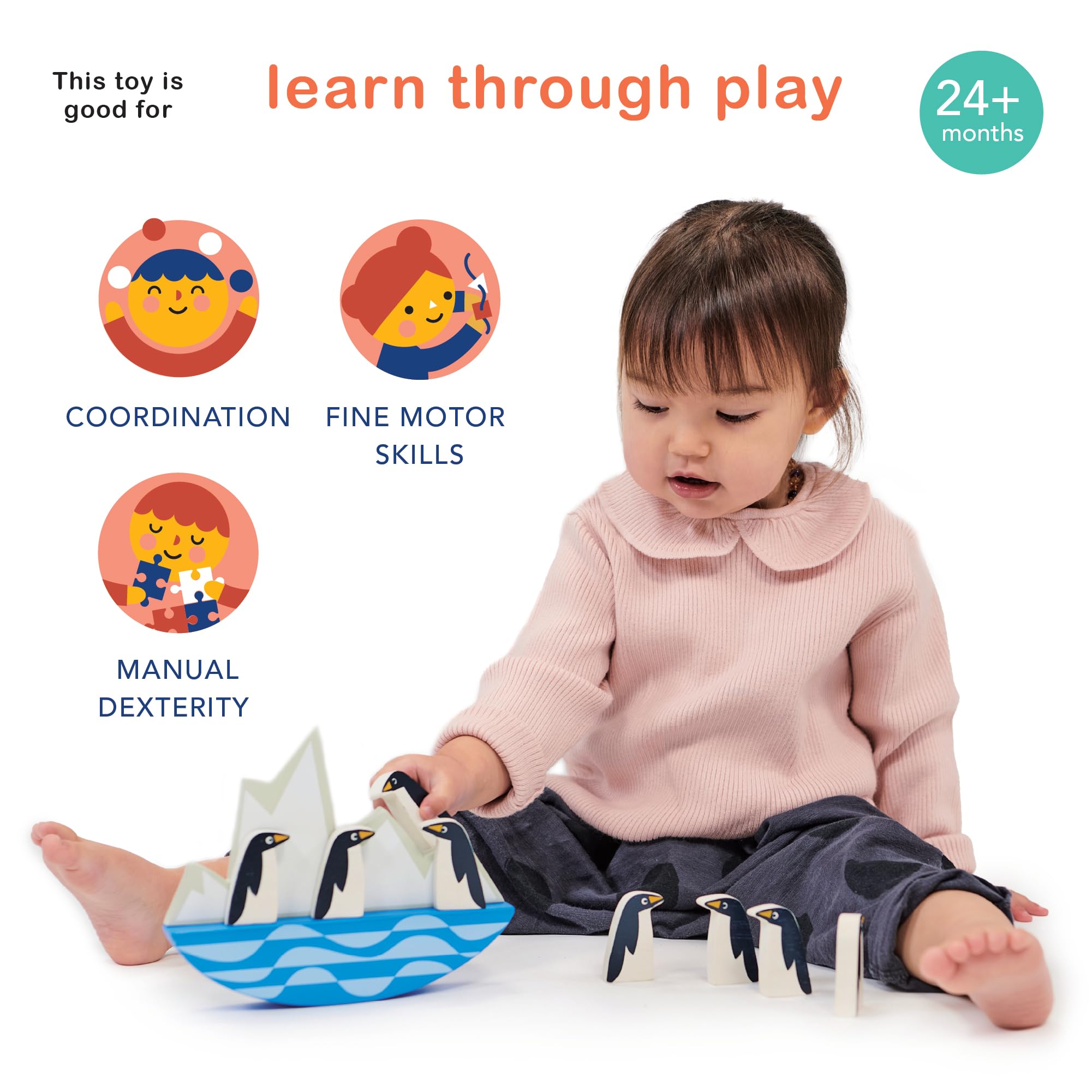 - BALANCE AND LOGIC – Children can take turns adding penguins, testing their steady hands and strategic skills, all while giggling at the delightful wobble of the iceberg. Will their penguin colony stand tall, or will they take a chilly tumble? Balancing Penguins will help teach children cause and effect while boosting fine and gross motor skills and improve hand-eye coordination.