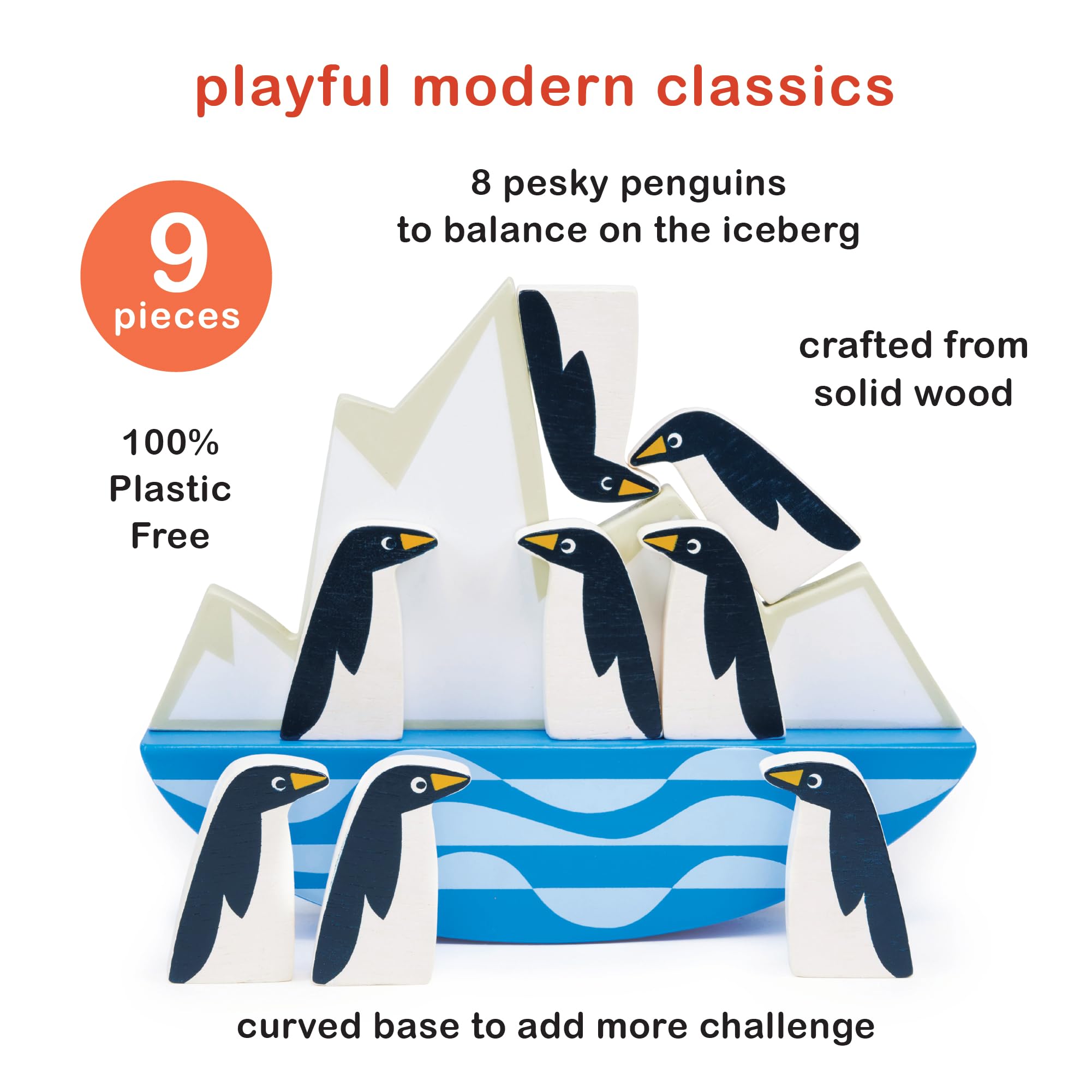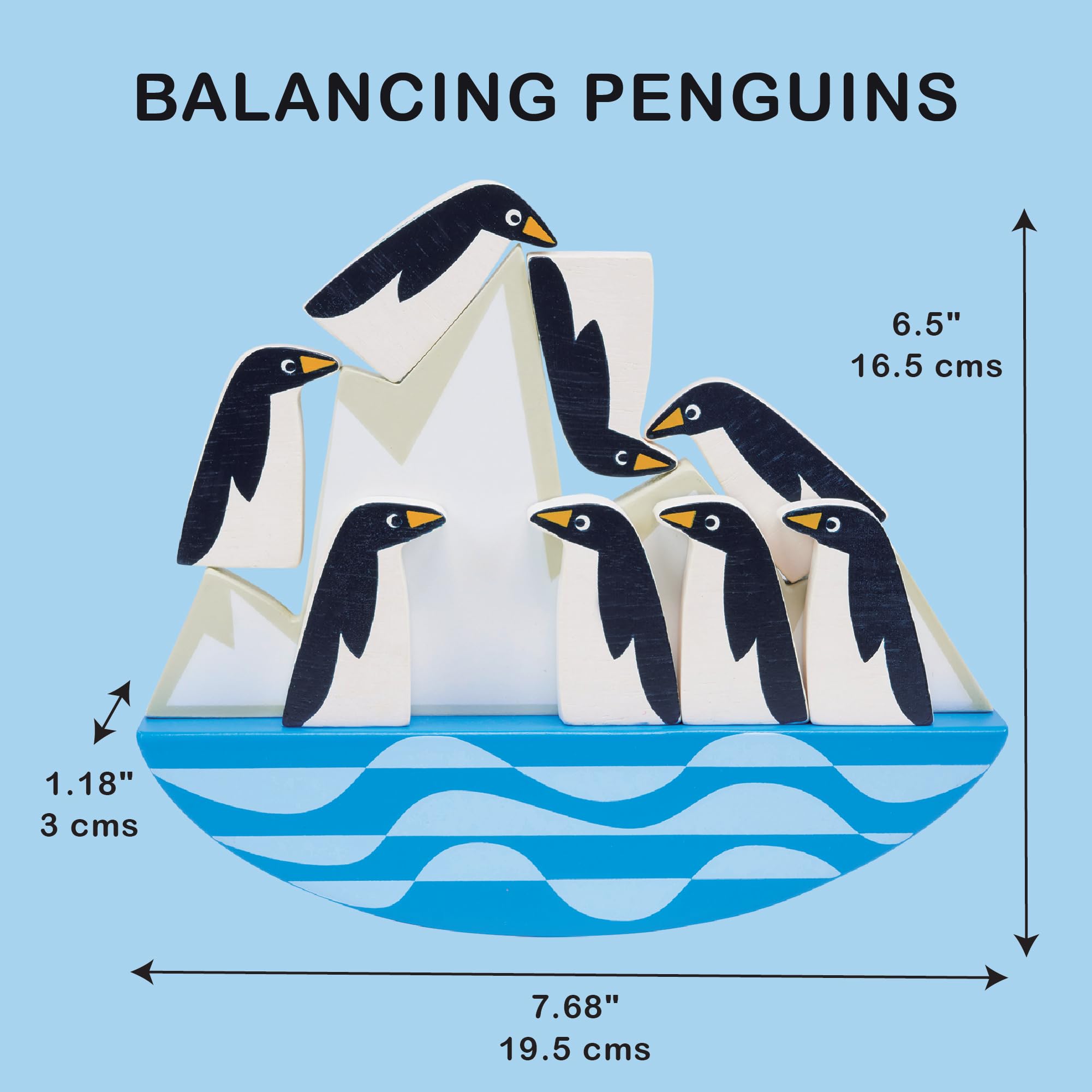 - WADDLE-TASTIC FUN – Introducing the Balancing Penguins – a waddle-tastic wooden toy that will have kids tipping and toppling in delight! This charming set features 8 adorable wooden penguins, ready to show off their balancing act on a rocking iceberg. The aim of the game is simple: stack and balance all the penguins without making them slip and slide into an icy splash!