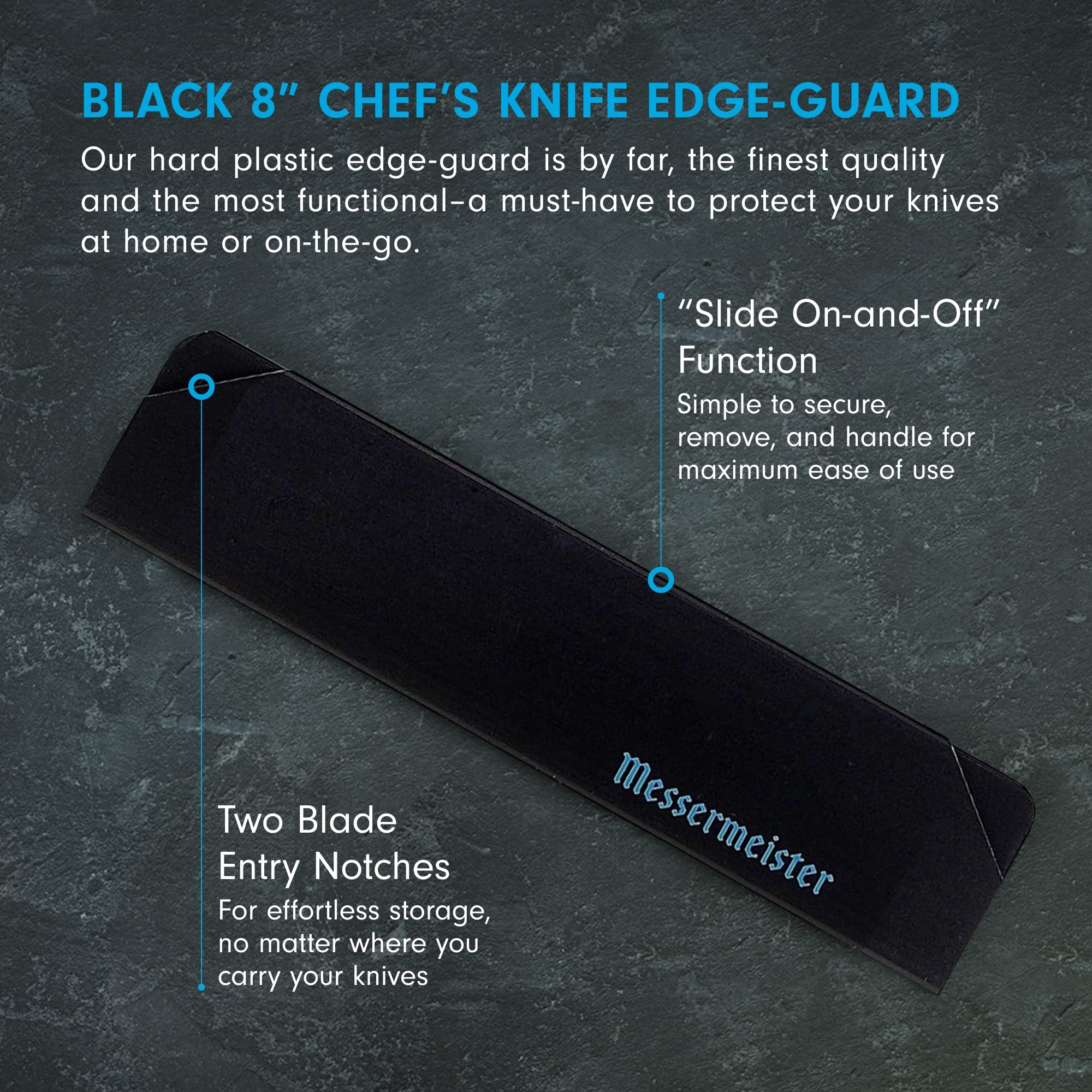 KNIFE GUARD – Messermeister pioneered the original, hard plastic slide-on-and-off plastic Edge-Guard. Today, it remains the finest quality edge protector on the market & has evolved into a fashionable, functional safety accessory for any knife blade.