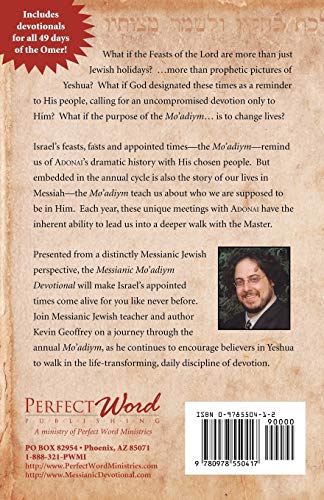 The Feasts of the Lord will come alive like never before as you journey through Israel’s annual appointed times with the Messianic Mo’adiym Devotional. This companion volume to the popular Messianic Daily Devotional contains insightful and uplifting devotionals from a Messianic Jewish perspective, designed specifically to be read during the yearly Mo’adiym as found in Leviticus 23 (one devotional for each day of every feast, including all 49 days of the Omer). Also included is a special, extended teaching that introduces you to God’s appointed times, offering a fresh approach that lays the foundation for a unique and life-changing devotional experience. Enter into the fullness of these designated seasons with Messianic Jewish teacher and author Kevin Geoffrey, as he draws out the inherent themes found in each appointed time… deep truths that will lead us into a life of maturity, as we grow in devotion to our Master, the Messiah Yeshua.