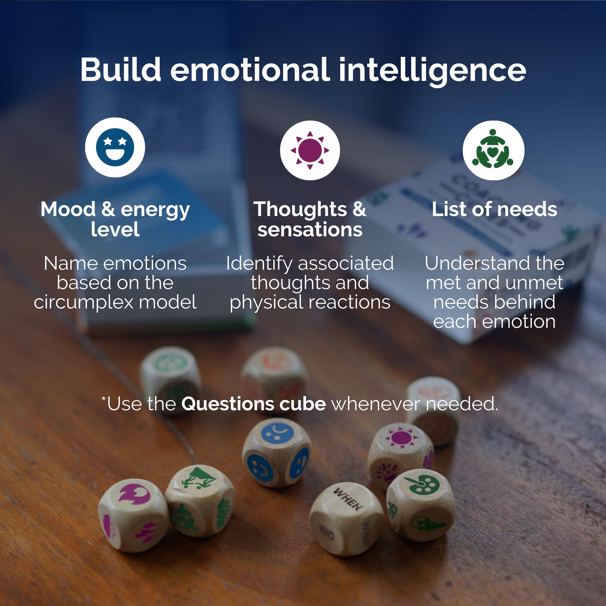 Foster Emotional Intelligence – These coaching cubes help individuals name and understand emotion through engaging story telling, fostering empathy, and improving relationships.