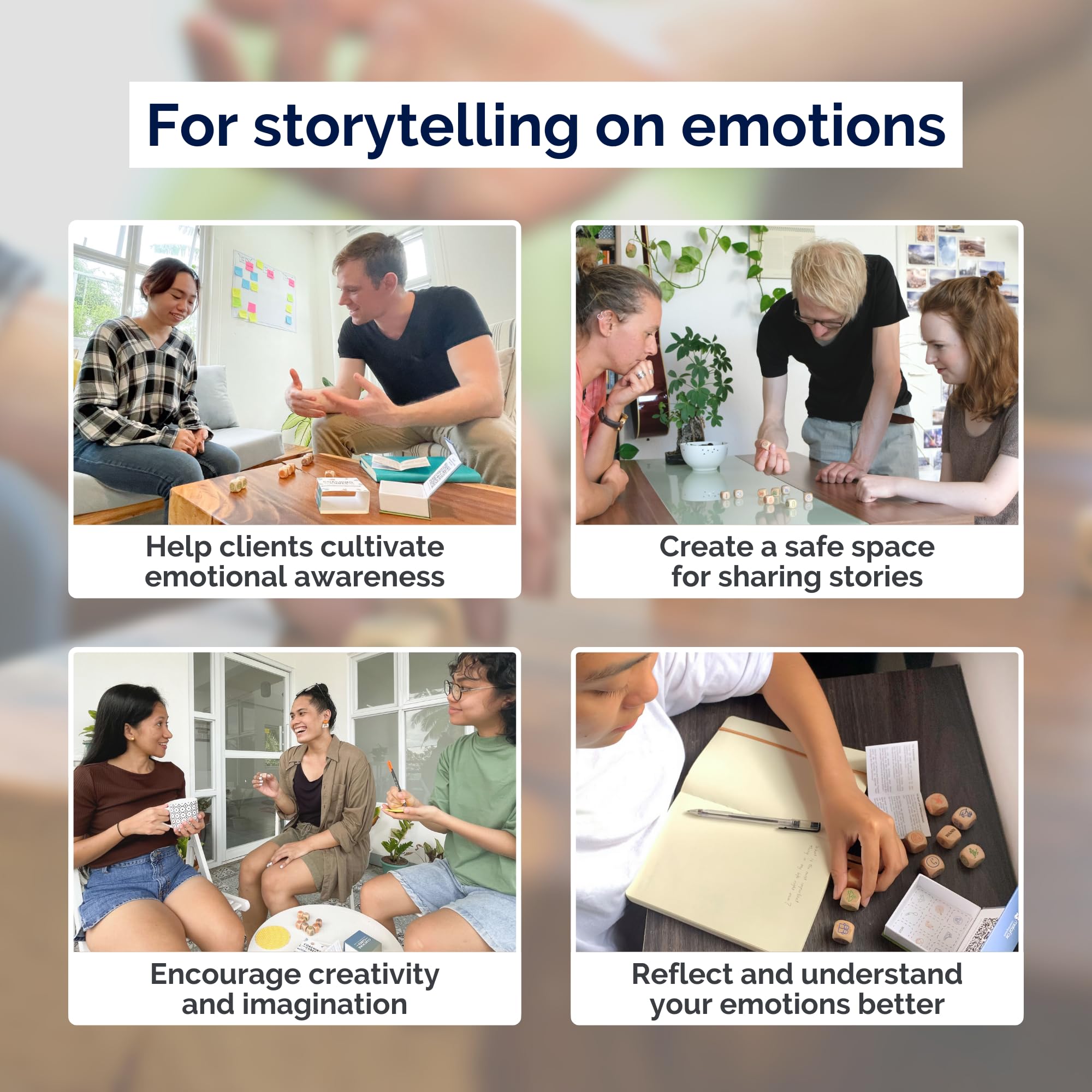 Comprehensive Set – Includes 9 cubes with 42 icons, 6 emotion words, and 6 questions for creative emotional exploration and as coaching materials for in-depth self-awareness and emotional expression.