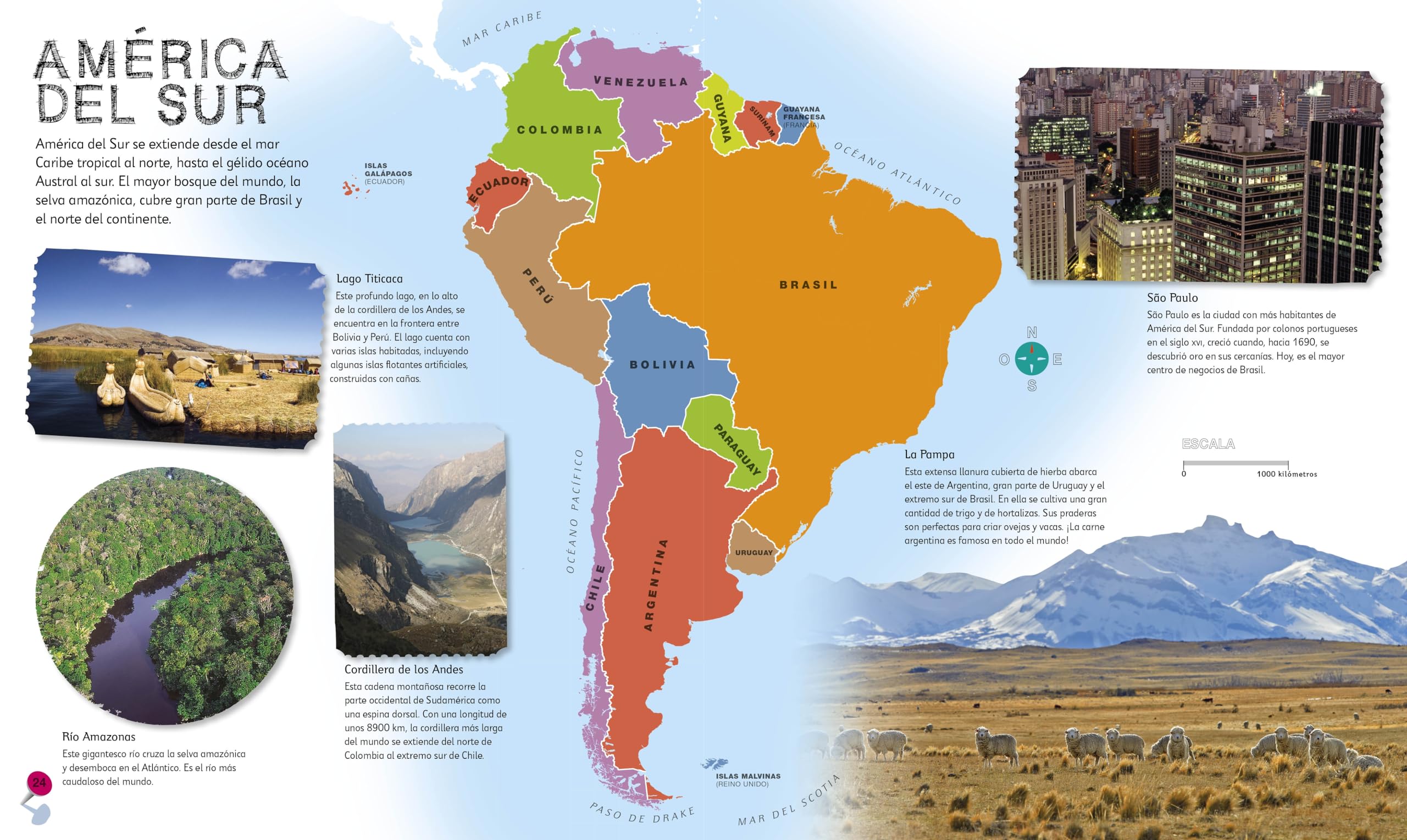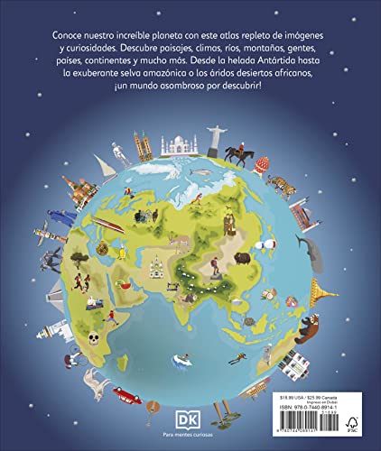 Complementa el plan de estudios escolar. – Incluye mas de 50 mapas del mundo con paises y continentes detallados y a todo color. – Datos y cifras breves y directos sobre cada pais, faciles de entender para los ninos. – Incluye un mapa del mundo ilustrado que puede utilizarse como poster facilitando asi el aprendizaje de todos los paises. !Descubre el mundo con este emocionante atlas, que incluye mas de 50 mapas! Cada pagina esta llena de informacion fascinante y espectaculares ilustraciones. Embarcate en un emocionante viaje alrededor del mundo y aprendelo todo sobre los paises, culturas, personas y animales de nuestro planeta. El libro tambien incluye un mapa politico de cada continente. !Aprenderas como leer un mapa y como usar una brujula y una escala! ———————————————————————————————————— – Supports the classroom curriculum. – Includes more than 50 maps of the world, featuring countries and continents in full color detail. – Bite-sized facts and figures about each country are easy for a child to understand. – Includes a map of the world, an excellent resource that will help learning all the countries. It brings the world to life with colorful maps and fascinating facts about the countries of the world. Each map is bursting with information, combining colorful icons with photographs representing key points about each country. Includes a world map, with a political map for each continent.