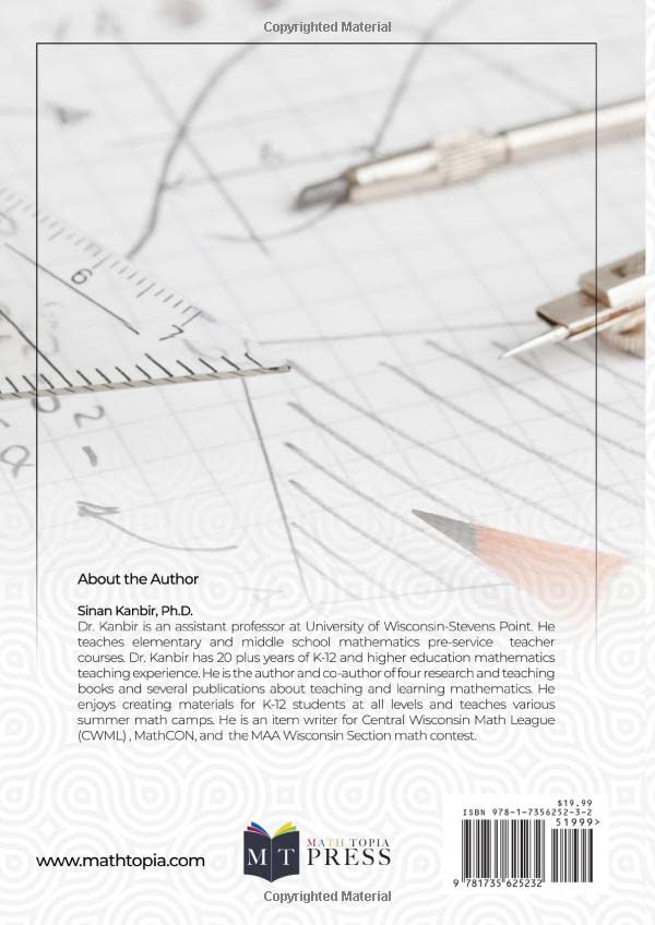 Middle School & Junior High Mathematics Challenge: Grades 7-10 Prepare for prestigious contests like AMC 8/10, MathCON Finals, MATHCOUNTS(r), and Math Leagues with this essential resource. Key Features: 250 Challenging Problems: 10 full-length practice tests to sharpen your skills for top competitions. Detailed Solutions: Comprehensive, step-by-step explanations for deeper understanding and improved problem-solving. Expert Guidance: Authored by Dr. Sinan Kanbir, a seasoned math educator and competition coach with extensive experience, including writing for elite contests like CWML, MathCON, and MAA Math Contests. Empower your math journey–embrace the challenge and excel!
