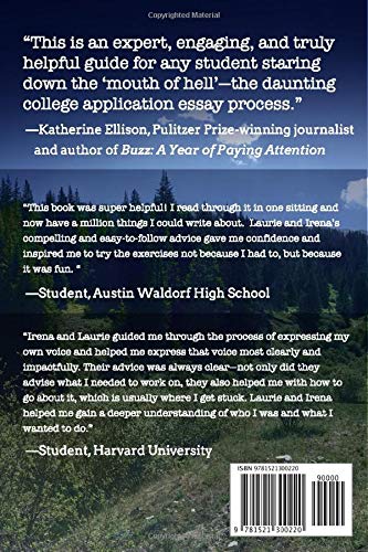 This guide will help you tell your Mighty Story. “This is an expert, engaging, and truly helpful guide for any student staring down the “mouth of hell” –the daunting college application essay process.” –Katherine Ellison, Pulitzer Prize-winning journalist and author of “Buzz: A Year of Paying Attention.” College application essays offer the chance to present who you are, in all of your particular splendor. To own that splendor is no easy task: sometimes the gems right in front of you are buried deep beneath a pile of expectations and commitments and doubt. The truth, however, is simple: you just need to dig them up. In other words, you have a life, and that life is full of stories. When Irena and I chat, and we frequently do, there’s a common theme: we love our jobs. Why? Because our students find their way into college, not solely through improving test scores or bolstering their list of activities, but by expressing their truest selves. Students who write for school papers, who struggle with dyslexia, who battle scorpions in Texas, search for mushrooms in Oregon, or jog Central Park religiously each day. We get to know them all, and in knowing them, like them immensely. We cheer them on, offering tips from the sidelines–we love being part of a team. This guide itself is an example of teamwork. I drafted the following exercises as a series of blog posts, and together we clarified a vision, coauthored new sections, scheduled weekly phone calls to work through revisions and edits. We get it that writers need support, especially when the work of writing is that of discovering what matters to you and who you truly want to be. Testimonials “Writing is an art. It is a skill honed with exposure to the best writing, and, more importantly, with guidance on how to tailor your unique expression. Irena and Laurie are wizards with words: they helped me crystallize verbose sentences and infuse them with new meaning and impact. I love most that their guidance is empowering. It enables and equips you to chart out a beautiful piece of writing that tells your story. This confidence and self-reflection is necessary going into an essay-writing process. Above all, their warmth, dedication, and collaborative approach made my application process a very memorable experience, one that I shall cherish forever.” –Student, Duke University “Irena and Laurie guided me through the process of expressing my own voice and helped me express that voice most clearly and impactfully. Their advice was always clear–not only did they advise what I needed to work on, they also helped me with how to go about it, which is usually where I get stuck. Working with Laurie and Irena was more than writing a college essay–they also really pushed me to really reflect and be honest with myself, which ultimately helped me gain a deeper understanding of who I was and what I wanted to do.” –Student, Harvard University “I truly believe that Laurie’s insightful questions made my son’s essays come alive. I don’t think he would have achieved the same results without her. Not only was he accepted at his first choice school, but he was given the Rensselaer Leadership Award which is a four-year merit scholarship.” — Parent, Rensselaer Polytechnic Institute student “This book was super helpful! I read through it in one sitting and now have a million things I could write about. Laurie and Irena’s compelling and easy-to-follow advice gave me confidence and inspired me to try the exercises not because I had to, but because it was fun. ” –Student, Austin Waldorf High School