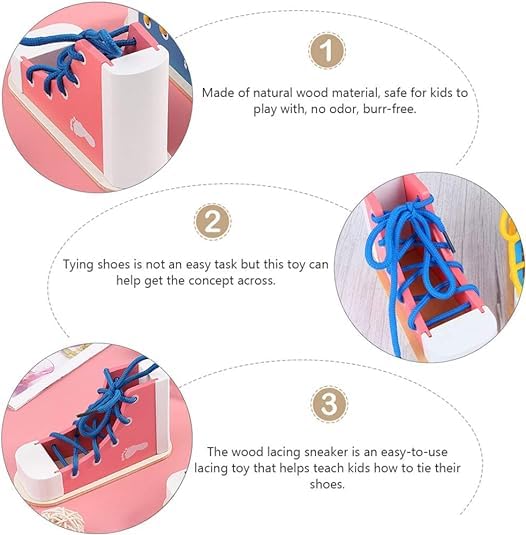 - PRACTICE MAKES PERFECT: This wooden shoe tying practice kit comes with one kids shoe toys to help little ones learn how to tie their shoes through repetition in a playful manner.