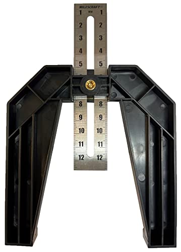 Product Description Use the Milescraft(r) DepthGauge(tm) you can quickly and accurately locate and/or measure and mark blade and bit heights and fence offsets. Measure twice, cut once. For use with: Routers, Router Tables, Table Saws, Band Saws and Much More! Dual Metal Scale * Durable and long-lasting stainless steel scale with inch and metric measurements to quickly measure table saw runout, check the depth of your slots, set the depth out routers and much more. Easy Measurement Readout * Brass thumb knob allows you to accurately tighten your measurement on your scale, allowing for precise readout from the top of the DepthGauge. Self-Standing Frame * Durable frame with wide base feet allows the tool to be self-standing for setting cutting depth on routers, router tables, table saws and more. From the Manufacturer Quickly and accurately measure, mark or locate blade or bit heights and table or fence offsets. Easily lock and unlock scale with easy thumb lever. Metal scale measures in millimeters and inches.