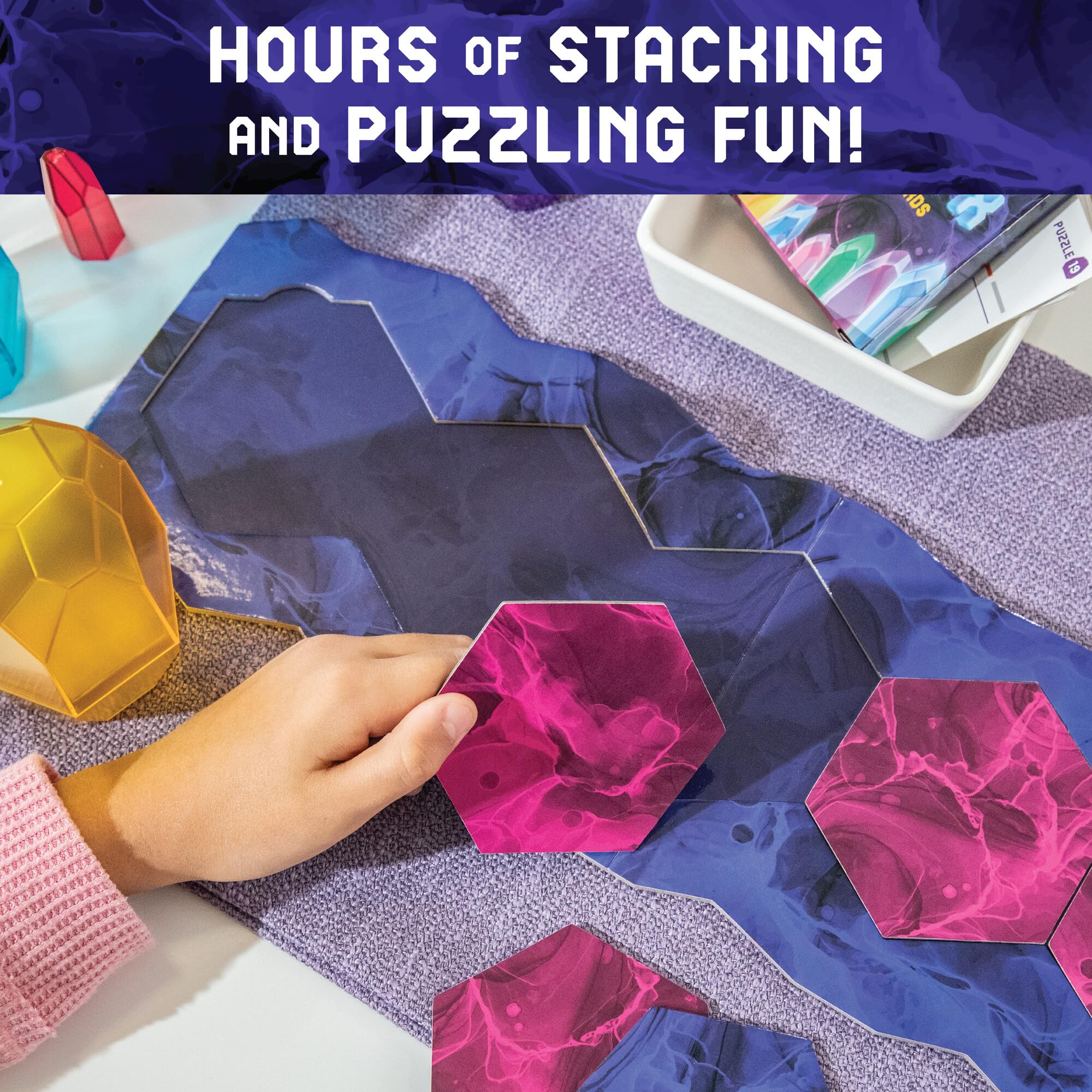 - Includes: This set of brain teasers for kids includes 9 geode pieces, 1 gameboard, 5 gameboard hex tiles, 36 puzzle cards, instructions and solutions guide (Ages 8 and up)