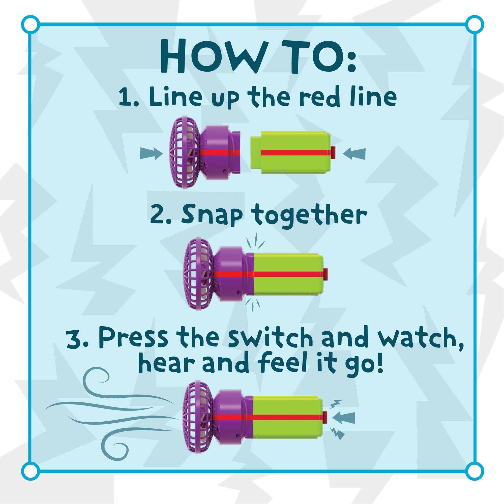 - Mix and Match: Your curious child can mix and match the switch blocks and action tops simply by snapping them together. Make sure the red line is continuous across both pieces to complete the circuit.