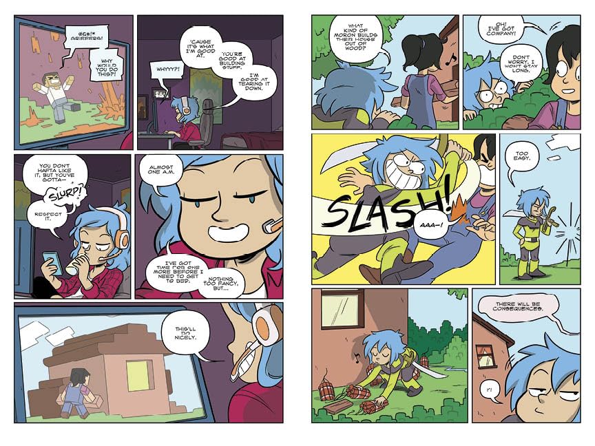 With tales of witch and pillager rivals finding common ground, a heartless griefer who bit off more than they could chew, and valiant heroes new (or not!) to the Overworld, this anthology tells tales that span the world of Minecraft. Featuring stories from star writers Hope Larson (Batgirl), Kevin Panetta (Zodiac Starforce, Bloom), Rafer Roberts (Modern Fantasy, Grumble), and Ian Flynn (Sonic, Mega Man) and exciting artists Meredith Gran (Octopus Pie) and more, this collection brings together stories from all realms, leaving no block unturned!