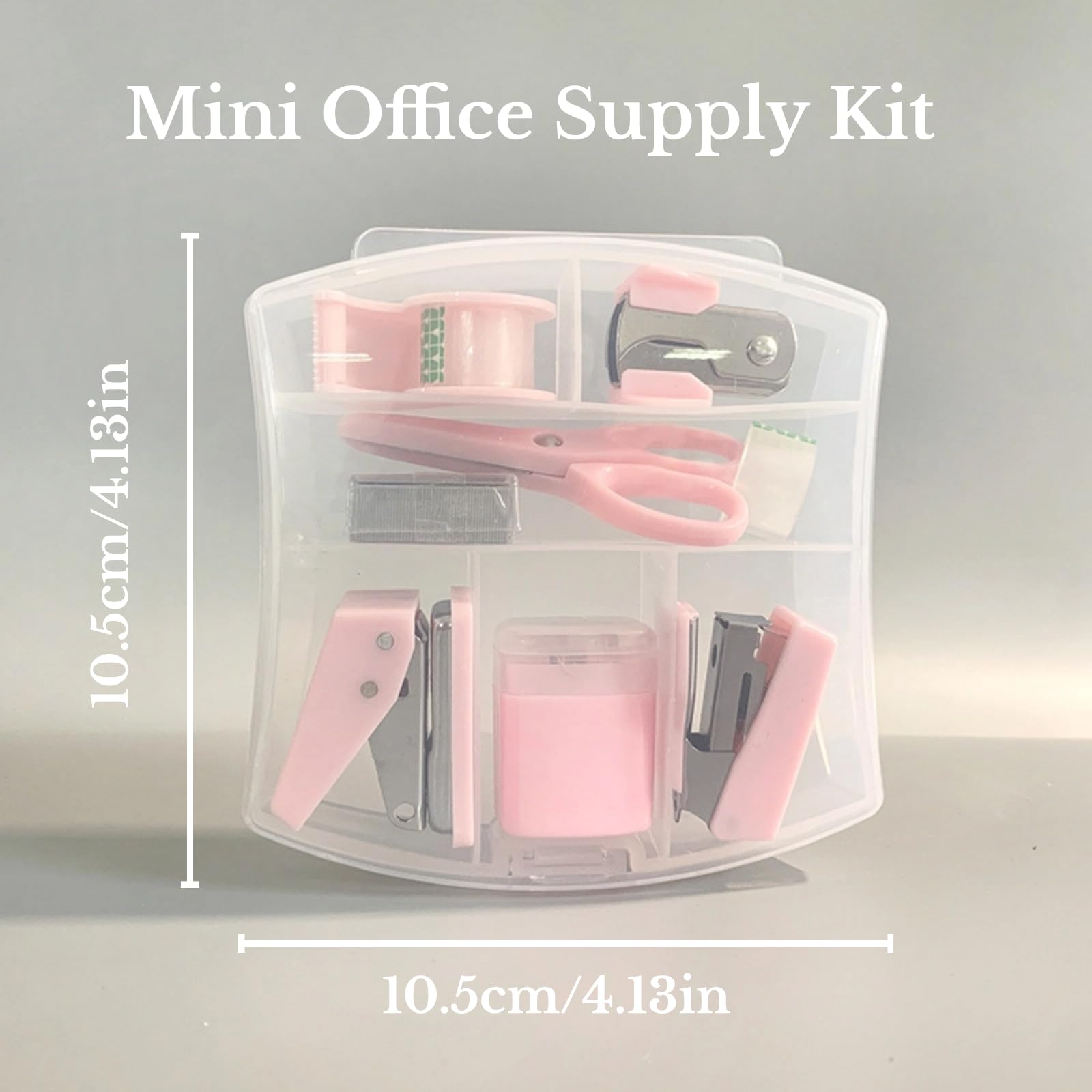 Mini Office Supply Kit Portable Case with Scissors, Mini Stapler,Tape Dispenser,Hole Puncher,Staples Mini Desktop Stapler for Office Or School Supplies