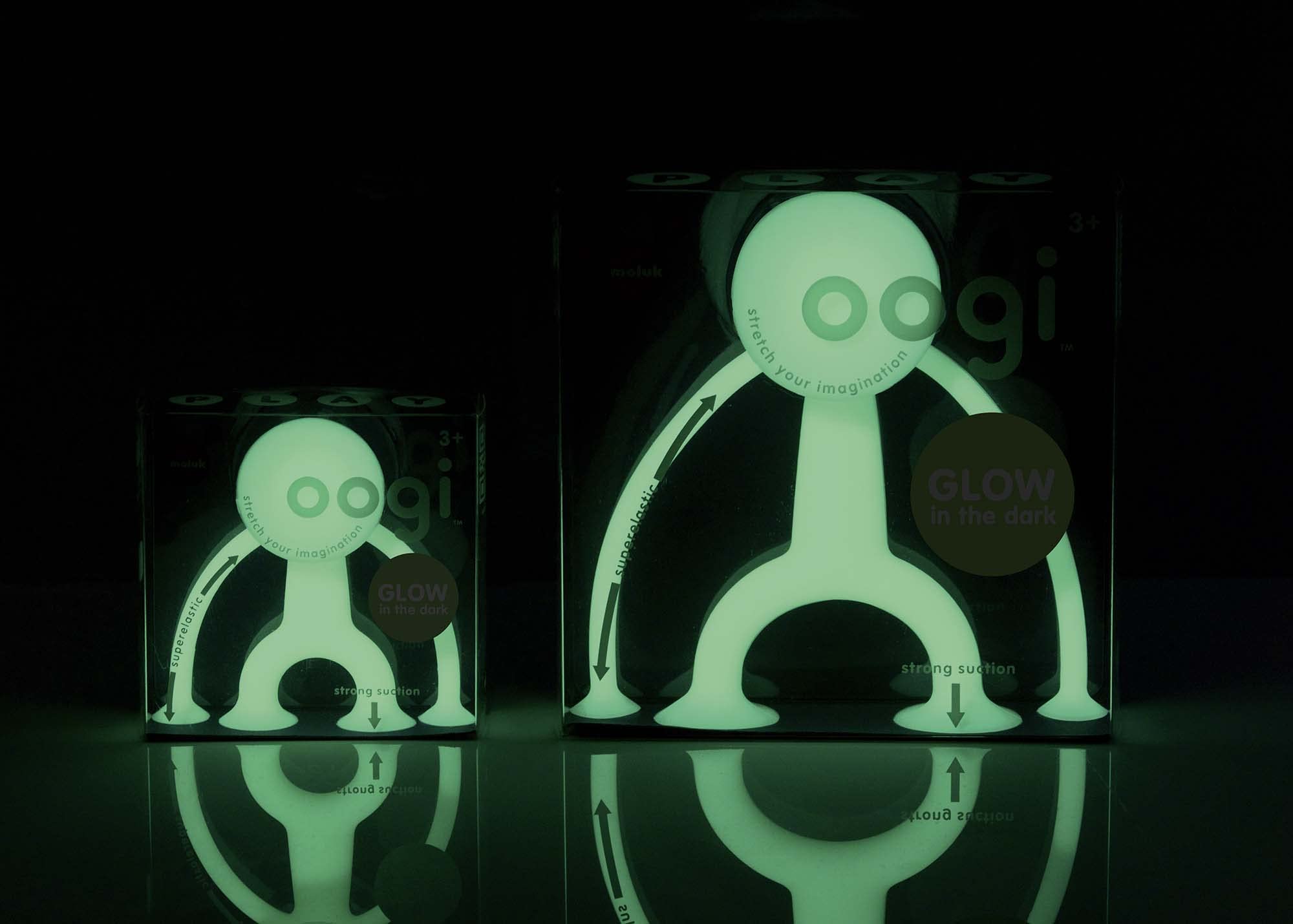 With super elastic silicone rubber and suction cups as hands, feet and head, Oogi opens up fantastic playing and expression possibilities. Oogis can be connected to each other and stick to smooth surfaces. Oogi stimulates children’s imagination and imagination and promotes fine motor skills and hand-eye coordination. A real game innovation that glows in the dark and provides fun for children of all ages.
