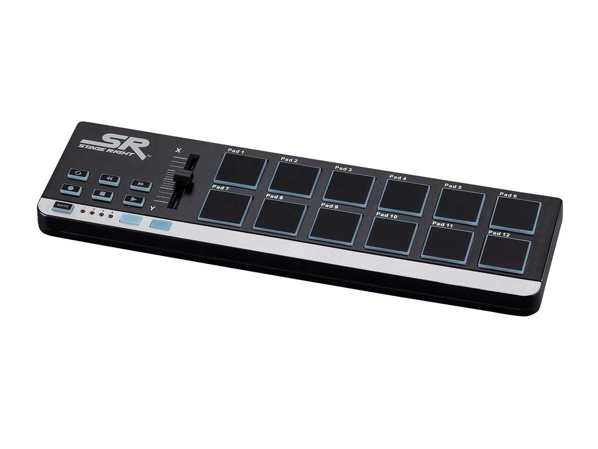 As music has changed, so has the equipment used to make it. MIDI pad controllers have come a long way since their early days and are now considered an essential, central component of many modern music production studios. The Stage Right SRP12 USB Pad Controller aims to provide the power and flexibility of a modern studio centerpiece in a portable and ultra-compact package. Contemporary Pad controllers aren’t simply clip-launching devices any more. They help producers and musicians in the creative process. The SRP12 features 12 backlit, velocity sensitive pads, which are ideal not just for tapping out beats or triggering samples, but also in composing melodies or playing other types of virtual instruments. Unlike other basic pad controllers, the Stage Right SRP12 features 6 MIDI Machine Control (MMC) buttons for controlling a sequencer. If you don’t need to control a sequencer, you can map the buttons for transport control within any DAW software. The SRP12 isn’t simply a beat-making tool, but a powerful addition to your DAW. The SRP12 is USB powered, so you can take it with you and use it with your laptop anywhere. Compact enough to fit into a backpack, the SRP12 is the ideal controller to keep you working on tracks while on the road or away from the studio.