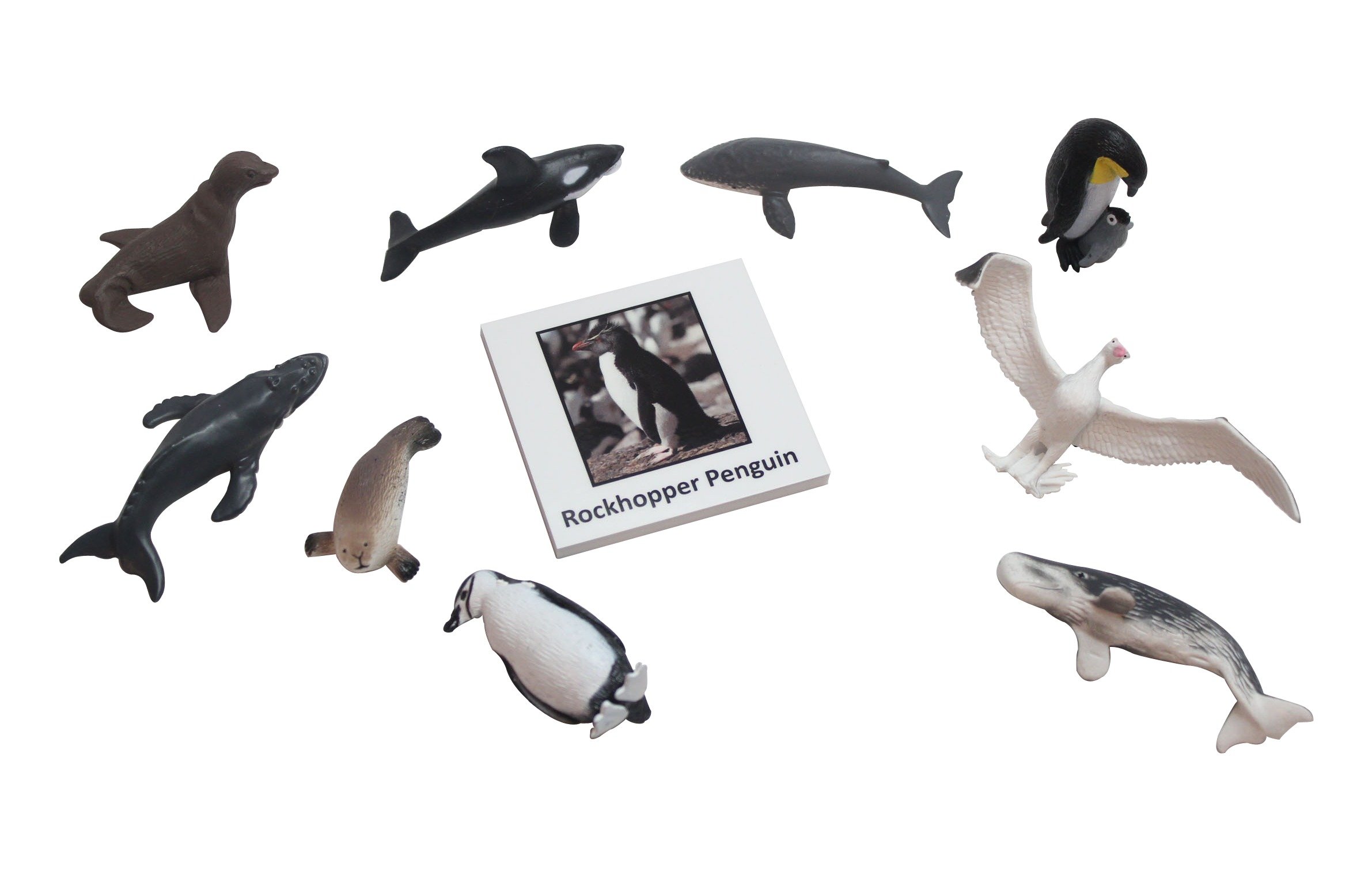 • Animals include: Killer Whale, Sperm Whale, Blue Whale, Humpback Whale, Antarctic Fur Seal, Crab-eater Seal, Emperor Penguin, Wandering Albatross, Chinstrap Penguin, Rockhopper Penguin.