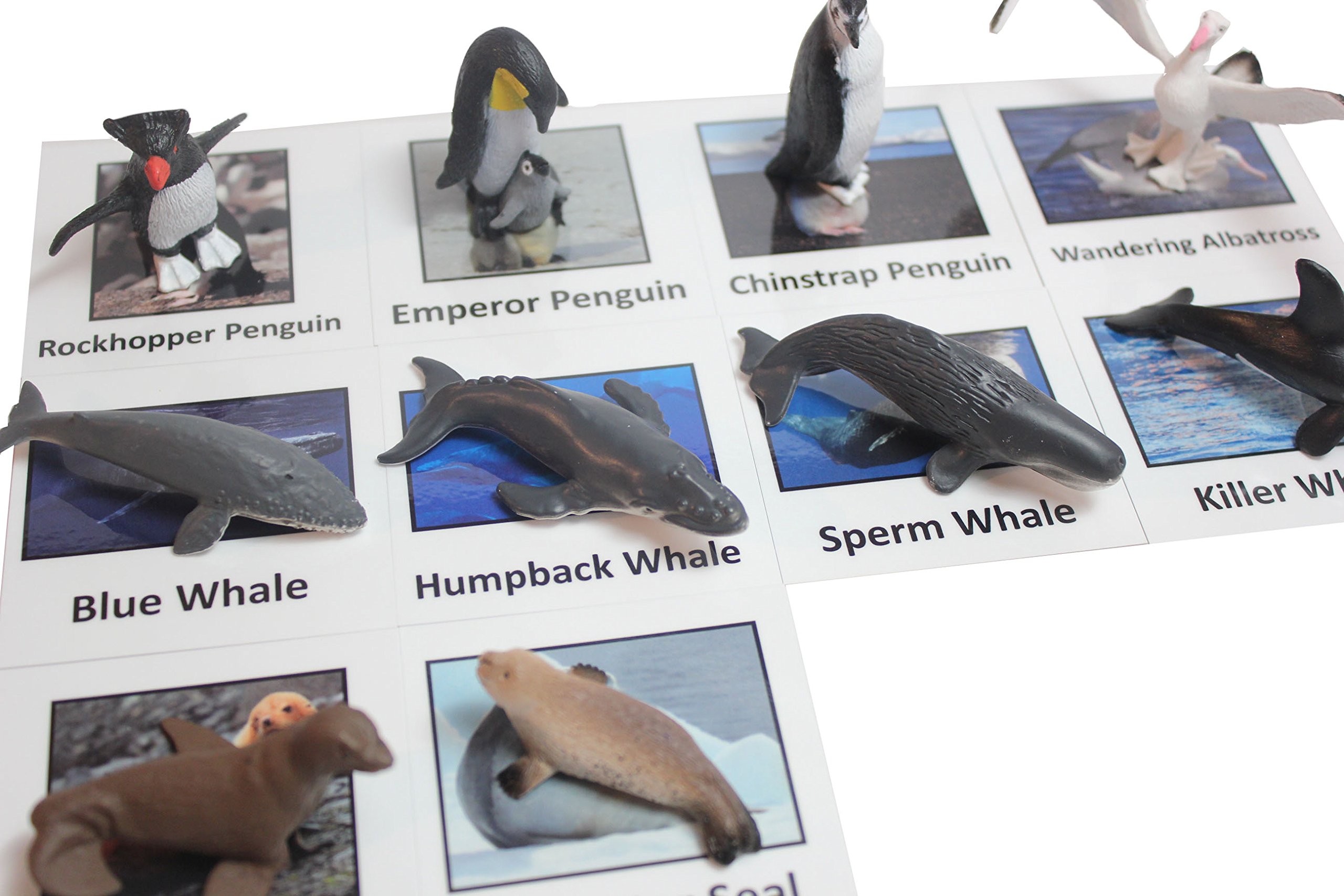 Montessori Antarctic Polar Animal Match - Miniature Arctic Animal Toy Figurines with Matching Cards - 2 Part Cards. Montessori Learning Toy, Language Materials Busy Bag Activity