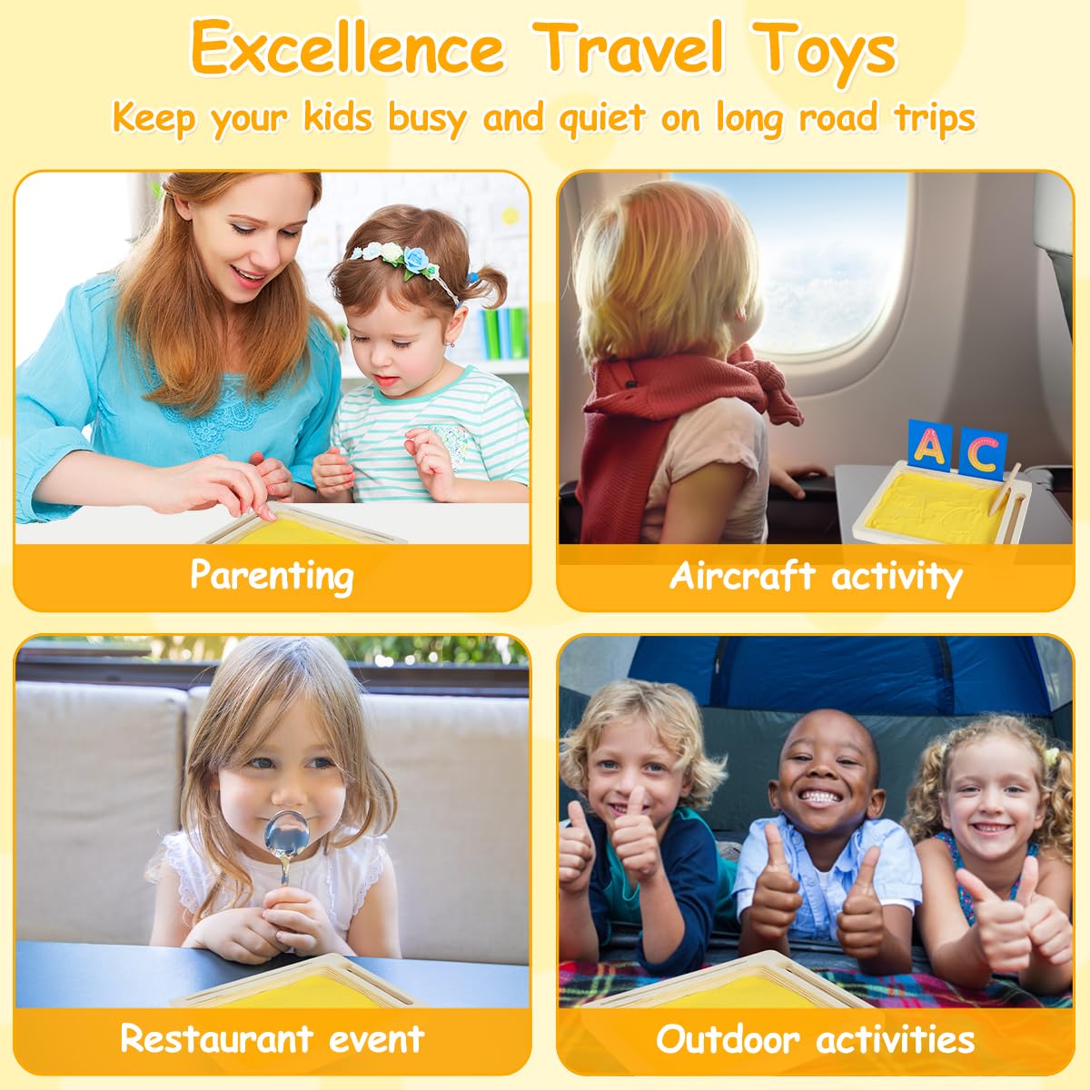 - [(Practice and Learning)] Your child can use their fingers to move the sand as they practice their letters, providing tactile practice. This fun and unique way to practice letters is more interactive than the classic pencil and paper. Train hand muscles until they master the correct letter formation.