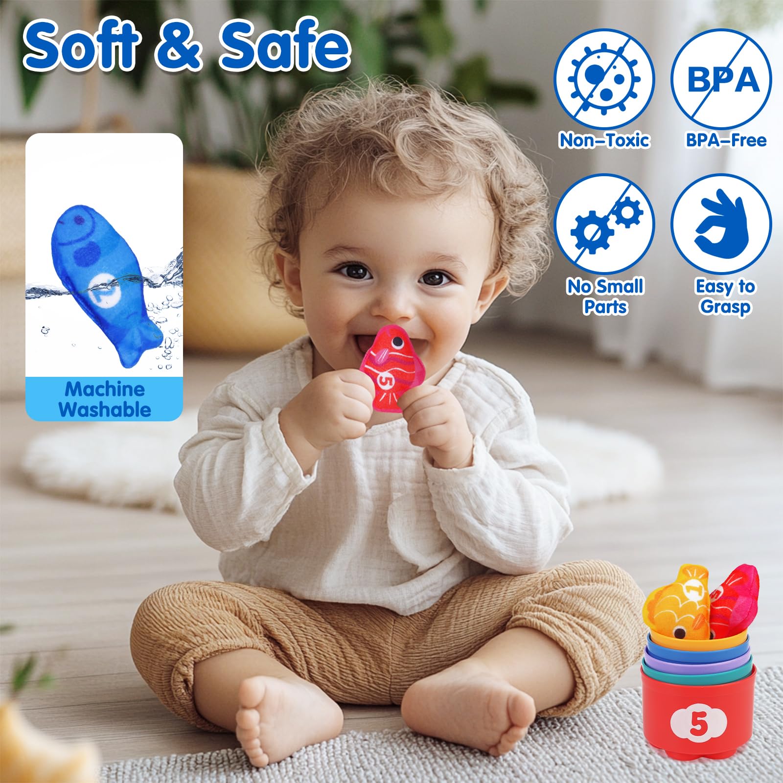 - Montessori Fishing Toy Set: You will receive a fishing pole, 15 pcs cloth fish, 5 pcs stackable fish buckets, and a play mat that doubles as a storage bag. As a baby toys 12-18 months to explore and try, it awakens the curiosity of the children, helps them explore, experiment and discover. Ideal toddler toys for 1 2 3 year old boys and girls
