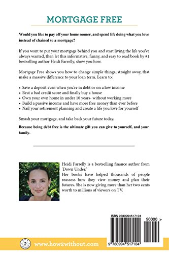 Are you struggling to save a deposit and buy a home? Is your credit score preventing you from getting a home loan? Would you like to pay off your home sooner and spend your life doing what you love instead of chained to a mortgage?This informative and easy to read book will provide you with all the knowledge you need to do just that and more. It walks you through how to budget and make more money, what and where to buy, how to beat a bad credit score, invest in property, and gives you the magic formula that will help you achieve mortgage freedom sooner.MORTGAGE FREE gives you all the knowledge you need to:*Write an awesome budget and learn how to make and save more money.*Save a deposit even when you’re in debt or on a low income.*Own your own home in under 10 years- without working more.*Build a passive income and have more free money than ever before.*Nail your retirement planning and create a life you love for yourself.I promise, if you follow even some of the solutions in this book, you will be free of your mortgage years ahead of your peers. If you want to put your mortgage behind you and start living the life you’ve always wanted, then Mortgage Free will show you how. The longer you wait, the harder it becomes to get ahead. Learn how to smash your mortgage today and take back your future.Because being debt free is the ultimate gift you can give to yourself, and your family.