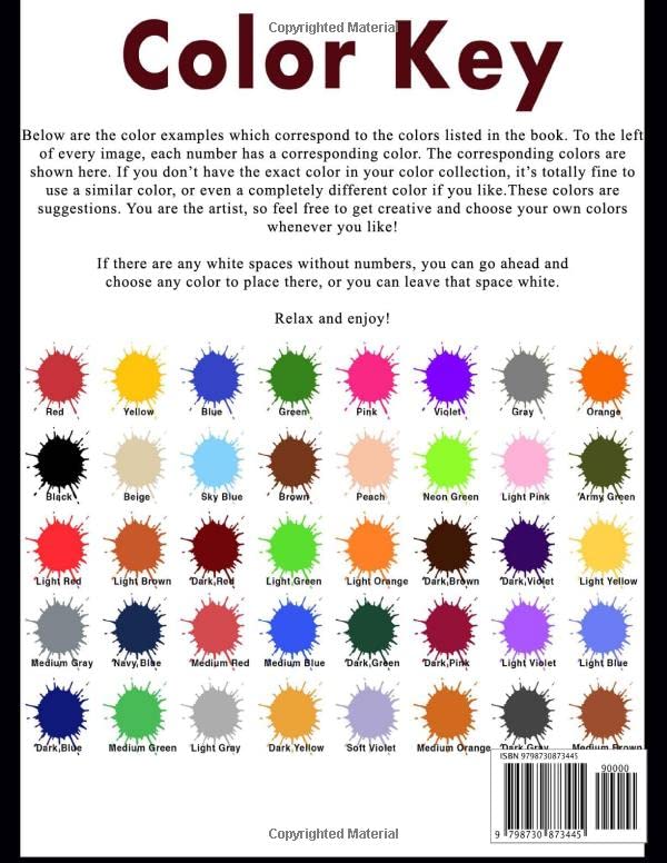 This is the beautiful Midnight Edition of our Cats and Kittens Color by Number Coloring Book For Adults- on black paper with black lines! Enjoy hours of therapeutic coloring with detailed kitties that you will love! This book includes lots of different types of cats and kittens enjoying life and having fun!If you’re looking for a soothing way to relieve stress and lower anxiety, then this gorgeous black background color by number coloring book is perfect! If you know our books, and don’t love coloring in the white lines of the mosaics (which can be very detailed), this is the book for you! All the lines are already filled in in black! Enjoy the most beautiful, relaxing yet challenging collection of feline art for adults, teens, and kids of all ages! Why You will Love This Colour By Number Book Gorgeous Illustrations. You will get 20 beautiful, unique hand drawn cat illustrations to enjoy in this book. Bonus Images. There are extra BONUS color by number puzzle pages from some of our other books to enjoy! Single Sided Images. Each image is printed on high-quality 8.5×11 paper and every drawing is followed by a blank sheet of paper so you never have to worry about tearing individual images out of the book. Single sided pages are great for framing! Beautiful Mosaic Look. Mystery mosaic images look like gorgeous stained glass or stencil drawing shapes when finished Use Any Coloring Tool. You can use colored pencils, gel pens, markers, paint, ink, watercolor, sharpies, Crayola crayon- any type of coloring tool you like! Simple Color Palette. You choose: Follow the easy numbered color tool provided at the back of the book, or get creative with your own color palette. There are 25 colors used in this book specially designed to match most marker and colored pencil sets! Great for All Skill Levels. Simple and fun coloring book for adults, kids, teens- perfect for all ages! Both beginners and advanced artists will love this style! Good For The Mind. Color-By-Numbers books are simple to color for beginners, seniors, people with alzheimers, and elderly artists- they’re great brain games! Meditative and Relaxing. Color-By-Number patterns are easy coloring activities for mindfulness, meditation, color therapy and peace Fantastic Gift Idea. if you’re looking for a great gift for a cat lover in your life, this is the perfect book of adorable kitties! Or buy this book for yourself! Coloring books make great gifts for any holiday or special occasion, such as a birthday gift, Christmas present or stocking stuffer, Valentines Day gift, Mothers Day or Fathers Day gift, Easter basket, Anniversary gift, Graduation gift, and much more! Treat your loved ones, or yourself! Scroll up to buy now and get your copy instantly!