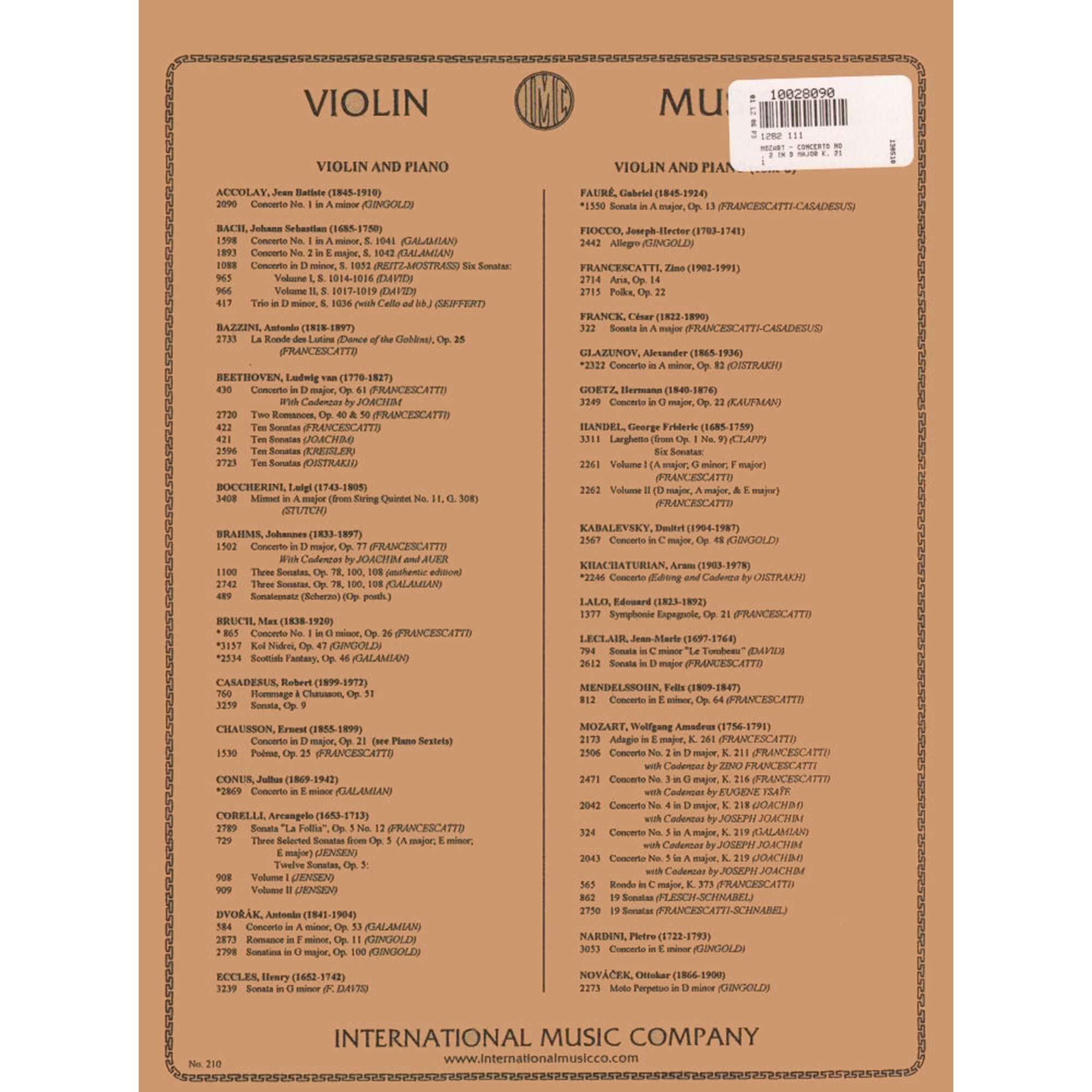 ![Mozart, WA - Concerto No 2 In D Major, K 211 - Violin and Piano - edited by Zino Francescatti - International Music Comp [Sheet music] [Sheet music] [Sheet music] [Sheet music] [Sheet music] [Sheet music] [Sheet music] [Sheet music] [Sheet music] [Sheet music] [Sheet music] - Image 2](https://m.media-amazon.com/images/I/81aq9mXnOaL.jpg)
