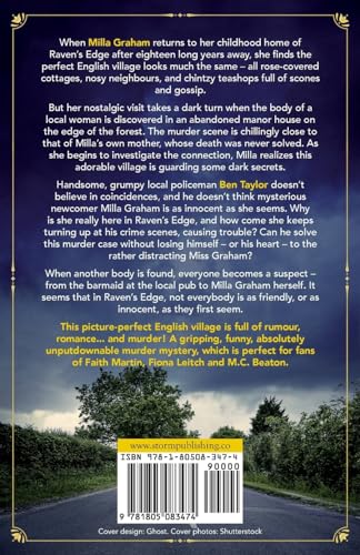 ‘What a twisted, tangled web! And I positively loved it!… a real page-turner. I devoured this book and loved every single page.’ Reader review, When Milla Graham returns to her childhood home of Raven’s Edge after eighteen long years away, she finds the perfect English village looks much the same – all rose-covered cottages, nosy neighbours, and chintzy teashops full of scones and gossip. But her nostalgic visit takes a dark turn when the body of a local woman is discovered in an abandoned manor house on the edge of the forest. The murder scene is chillingly close to that of Milla’s own mother, whose death was never solved. As she begins to investigate the connection, Milla realizes this adorable village is guarding some dark secrets. Handsome, grumpy local policeman Ben Taylor doesn’t believe in coincidences, and he doesn’t think mysterious newcomer Milla Graham is as innocent as she seems. Why is she really here in Raven’s Edge, and how come she keeps turning up at his crime scenes, causing trouble? Can he solve this murder case without losing himself – or his heart – to the rather distracting Miss Graham? When another body is found, everyone becomes a suspect – from the barmaid at the local pub to Milla Graham herself. It seems that in Raven’s Edge, not everybody is as friendly, or as innocent, as they first seem… This picture-perfect English village is full of rumour, romance… and murder! A gripping, funny, absolutely unputdownable murder mystery, which is perfect for fans of Faith Martin, Fiona Leitch and M.C. Beaton.