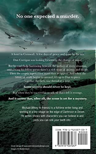 Includes an Exclusive Free Short Story – Mystery at the Hall No one expected a murder. A hotel in Cornwall. A few days of peace and quiet by the sea. Dan Corrigan was looking forward to the change of scene. But he can’t help burrowing beneath the surface of every situation, and among his fellow guests there’s a rich seam of secrecy and deceit. Then the cryptic typewritten notes start to appear. And when the fabric of truth begins to unravel, it’s up to Dan to piece together the facts, one thread at a time. Some secrets should never be kept. But when they’re too terrible to tell, all that’s left is revenge. And it seems that, after all, the scene is set for a mystery. Join Dan and Alan in Cornwall. It’s not all jam and scones.
