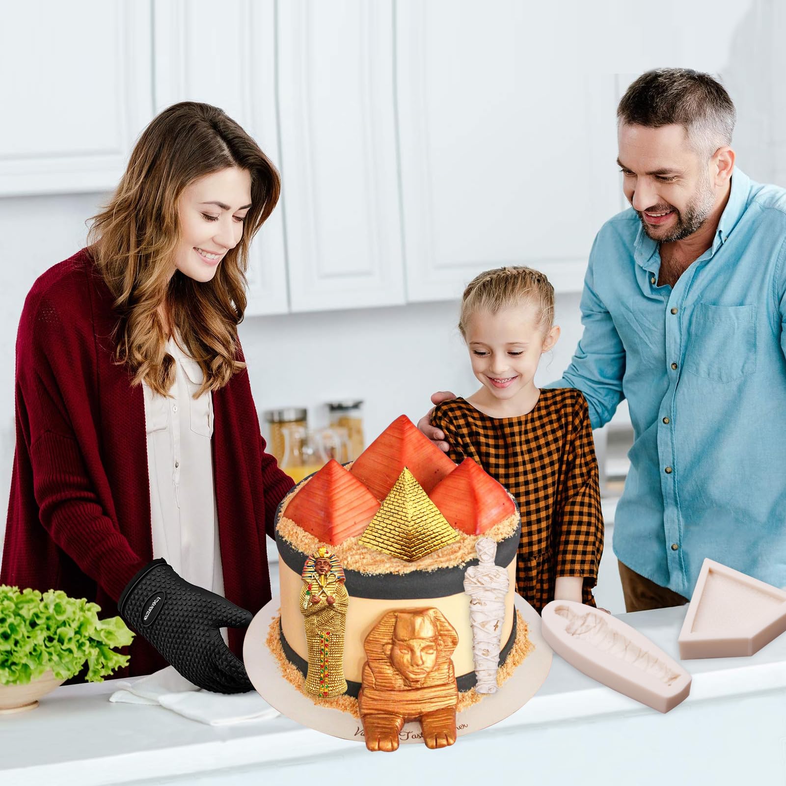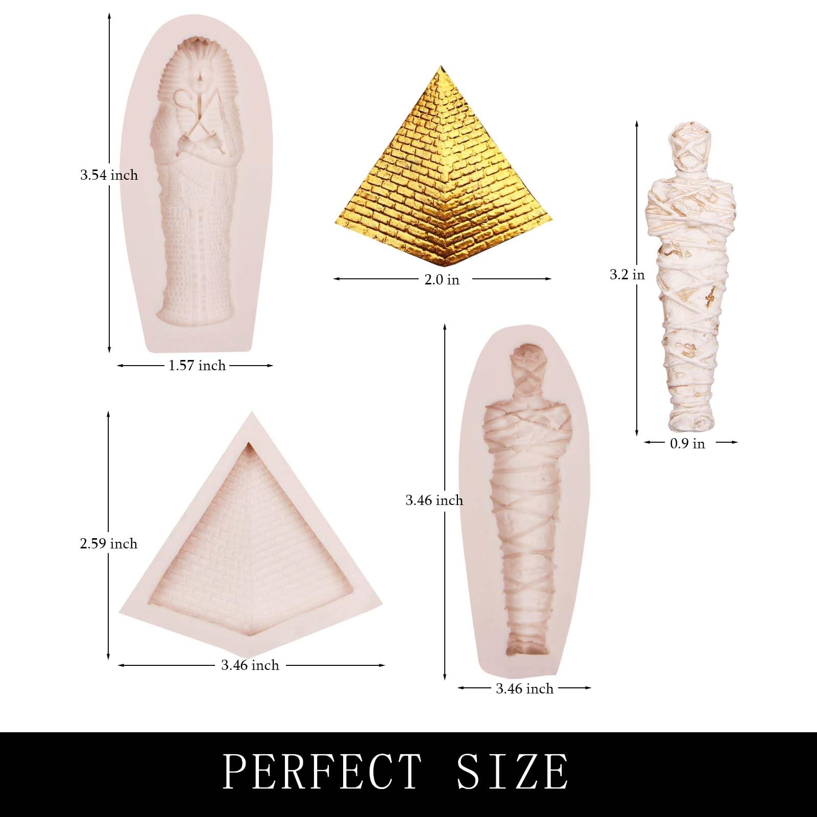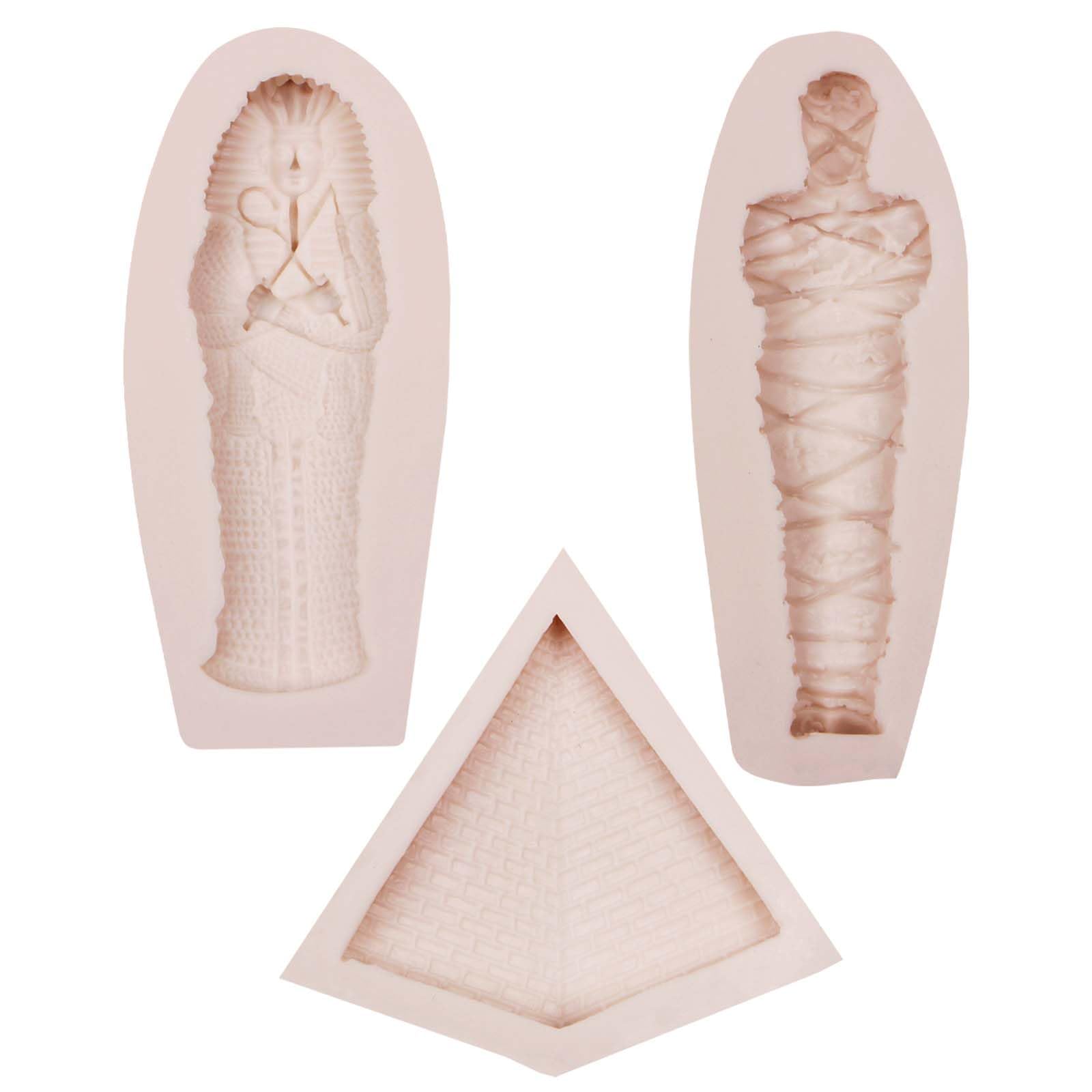- [ Mummy Silicone Mold ]: In the package you can get 3 pcs of egyptian silicone fondant molds, this silicone mold detail is fine and perfect for baking Egyptian pyramid theme cake decoration.