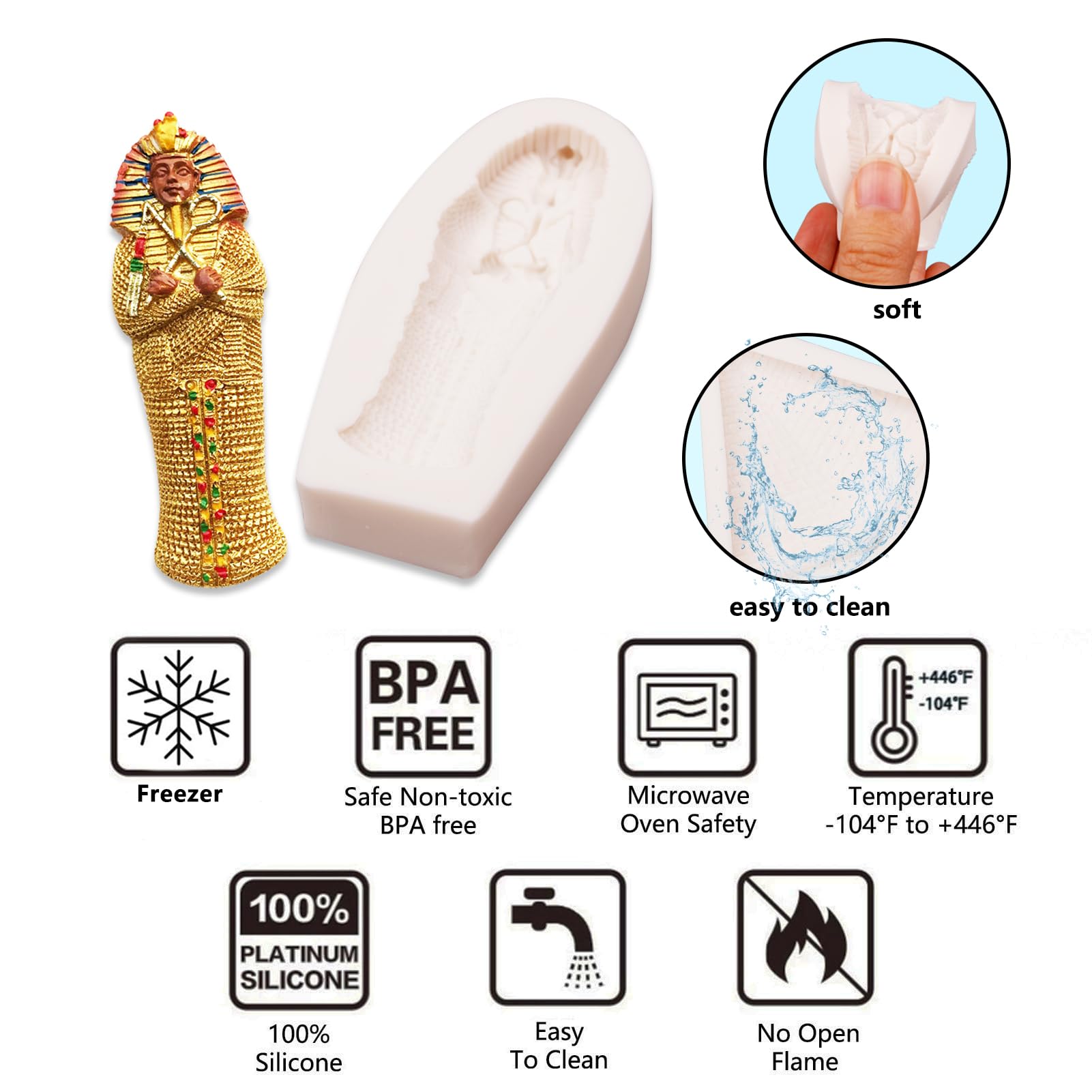 - [ Material Safe ]: These egyptian fondant molds are soft, made of 100% food-grade silicone, BPA-free! Heat resistant up to -40degF to +446degF. safe for microwave, oven, and dishwasher.