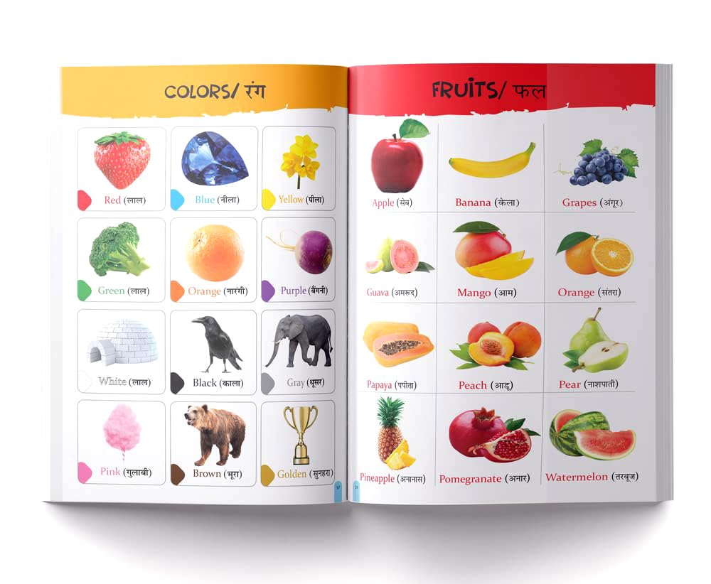 An excellent book to introduce the child to Alphabet, Numbers, Birds, Animals and a wide range of learning topics. The vibrant pictures with Hindi and English word labels encourage the child to expand their knowledge and buid a robust vocabulary in a very short time.