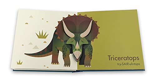 Stylish artwork by award winner Owen Davey makes this 3-D introduction to dinosaurs a standout. Watch long-extinct creatures spring to life in a striking first pop-up book for budding paleontologists. Showcased are fifteen dinosaurs and prehistoric reptiles, from Ankylosaurus to Velociraptor, each one accompanied by its name and pronunciation. At once simple and sophisticated, Owen Davey’s striking pop-ups, with their geometric patterns of spiky scales, dramatic splotches, and dotted feathers, are sure to mesmerize dinosaur aficionados of all ages.