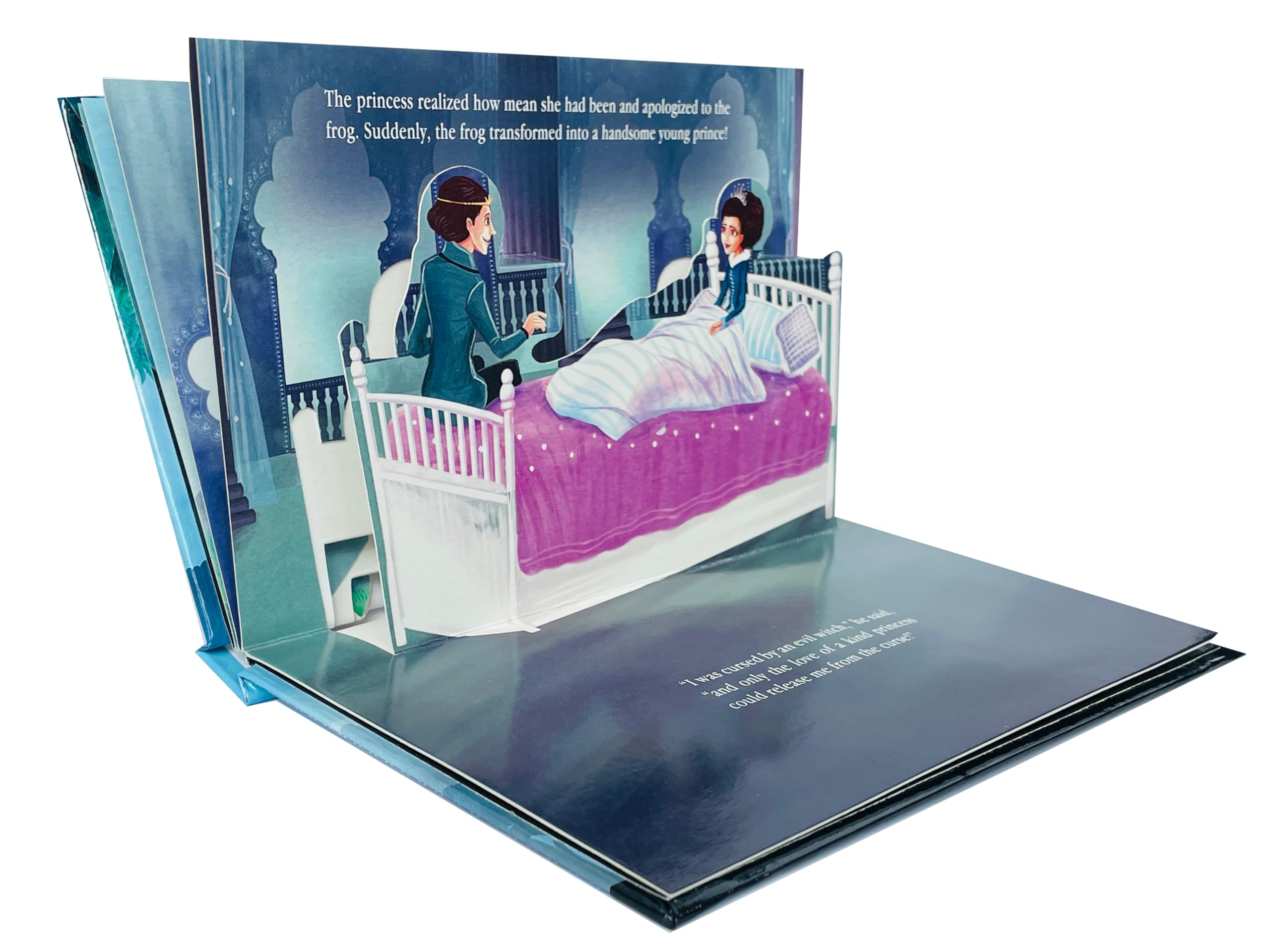 Follow the enchanted frog who, with a princess’s kiss, transforms into a prince and reveals a world of wonder. Each page reveals gorgeous pop ups that will delight the young readers. Ideal for beginners, this sturdy and vibrant book fosters a love for reading and storytelling. Where Fairy Tales Spring to Life! Retelling of the beloved fairy tale, The Frog Prince Helps develop fine motor skills, hand-eye coordination Engaging pop-ups on each page Sturdy and durable construction ideal for little hands Designed to foster a love for reading and storytelling