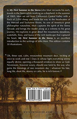 In My First Summer in the Sierra John Muir recounts his early travels in the Sierra while working as a shepherd. In the summer of 1869, Muir set out from California’s Central Valley with a flock of 2,050 sheep and made his way to the headwaters of the Merced and Tuolumne Rivers. As one of America’s great philosopher naturalists, Muir captures the spirit of the Sierra Nevada and brings the reader along as a witness to his great journey. He explores in great detail the mountains, meadows, waterfalls, flora, and fauna of the rich landscape that captured his heart. My First Summer in the Sierra is an excellent introduction to the writings of John Muir. This edition contains 30 illustrations.”Oh, these vast, calm, measureless mountain days, inciting at once to work and rest ! Days in whose light everything seems equally divine, opening a thousand windows to show us God. Nevermore, however weary, should one faint by the way who gains the blessings of one mountain day ; whatever his fate, long life, short life, stormy or calm, he is rich forever.”