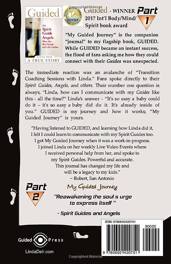 “Linda, how can I make the connection to my Spirit Guides and Angels?” This is the single most asked question Linda has received from the readers and listeners of her award-winning true story, GUIDED. My Guided Journey, of self-discovery and personal transformation(c) is her answer to those requests. From early childhood, Linda realized she was being guided. Now, after a lifetime of being guided, she is sharing what she learned, and most importantly, how she learned it. A serial entrepreneur, business colleagues have asked Linda throughout her life how she became so intuitive, how she knew when to get in and out of projects and situations at just the right time. Others wondered why she had so much energy and how she could get so much done making everything she achieved look so easy. For the first time, Linda explains how this works in your life. Harnessing the guidance she received through her journal writing starting at age seven, paid off in her adult life. Without any formal education, heeding the guidance that served her so well throughout childhood, by age 19, she became an unstoppable serial entrepreneur of businesses that were completely unrelated to each other. People always wondered how she did it. Journaling for mental health was what got Linda through a harrowing childhood, resulting in a chain of successes achieving far more than even she imagined … knowing she was being guided. Making this connection to your own guidance will occur naturally through your journal writing, leading you to a greater understanding of yourself. My Guided Journey is a 4-step process – writing in your journal: (1) Your thought, insight, dream, event, or experience. (2) How it feels. (3) What you realized. (4) The action you take will become obvious. It was the readers, and listeners of GUIDED, WINNER of the 2017 Int’l Body/Mind/Spirit Book Awards who brought this journal out of her. Wanting to learn what GUIDED teaches, emerged My Guided Journey, a work in progress with the early adopters a year before its publication. In GUIDED, I take you on My Guided Journey, so you can see what’s possible when you take yours. GUIDED triggers those early memories, aligning you with this journal. It’s a mix of spirituality and unexpected psychology, spiritual solutions for mental wellness. Having grown up without love or support in this world, I had all of that and more, from beyond this world. It was so easy a baby could do it, so easy a baby did do it. It’s already inside you. My Guided Journey is a breakthrough in the way you will look at your life. A transition back to your real self. My Guided Journey includes video support, guiding you through the 18 chapters in part two: https://lindadeir.com/category/my-guided-journey