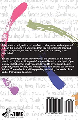 This journal is designed to help youth reflect on who they understand themselves to be at this moment. It is understood that they will continue to grow and evolve as people, but who they are at their core has already been established. They are the way they are for a reason. Their personality, likes and dislikes, strengths and weaknesses are clues to who they are becoming. This journal is to encourage them to look inside themselves and examine all that matters most to them right now. How they define themselves is an important part of their journey. They will be exhorted to reflect on that small voice inside of them, life-giving songs, books, scriptures, poetry, pictures, and messages that have shaped them! These reflections will help them begin capturing the ‘seeds’ of the kind of ‘tree’ they are becoming. The journey to who they are becoming begins NOW!