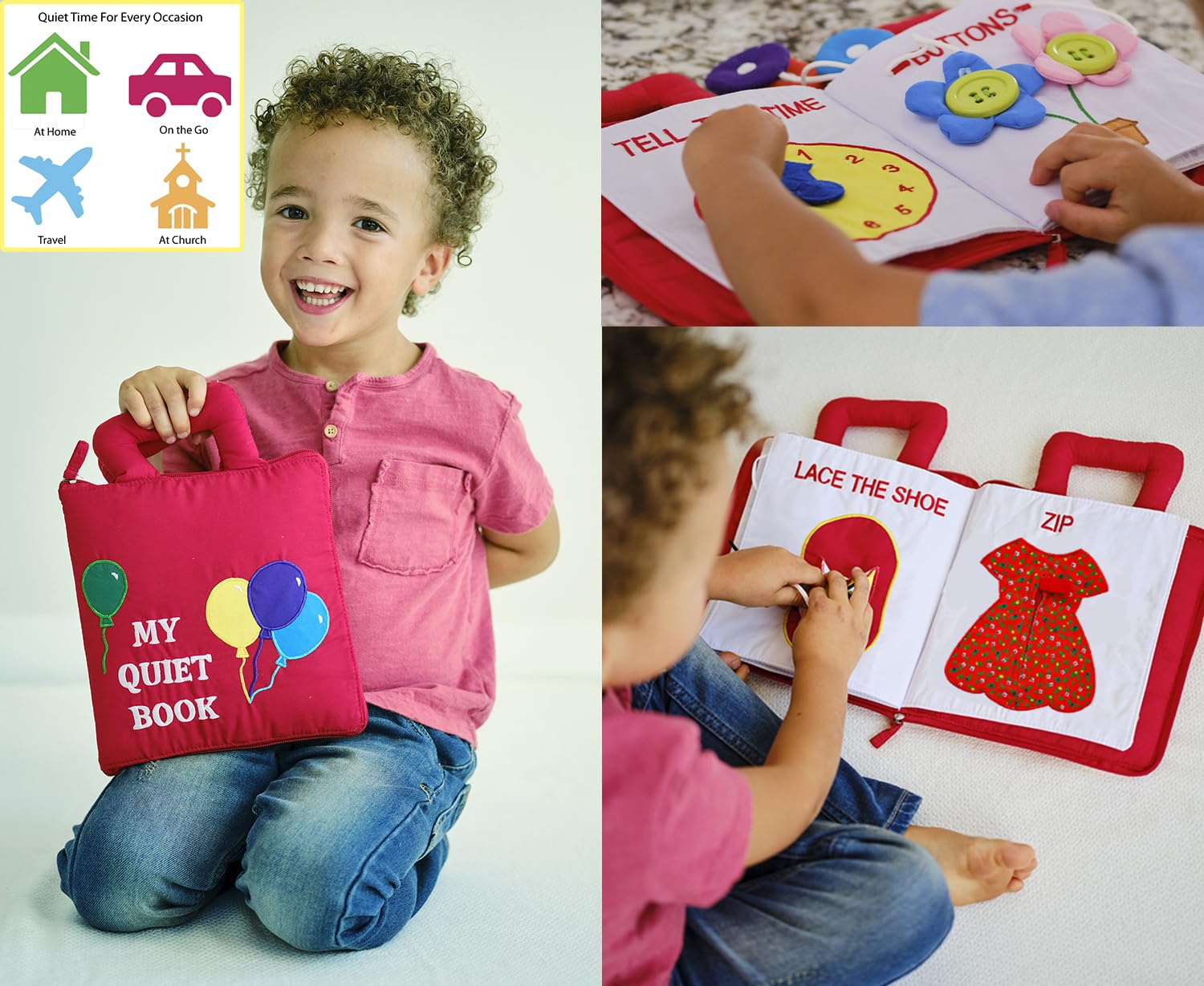 - TRAVEL-FRIENDLY AND SOFT. My Quiet Book is the perfect take-along companion to keep little hands busy learning, exploring, and playing. Take My Quiet Book along on car trips, plane trips, to appointments, church, or at-home quiet time. Its compact size and quiet activities make an ideal way to reduce screen time. A zipper and carry handles make it easy for children to carry. Made from soft and durable fabric, My Quiet Book is gentle to touch and designed for life skill and cognitive development.