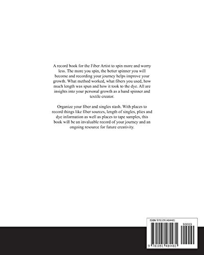 This is a workbook to accompany the amazing resources available on learning how to hand spin on a spinning wheel or drop spindle.Each spinning project has two pages to record the results of your raw fiber spinning project with space for notes on fiber source, equipment and method used, as well a space to tape samples of what you have created. For creating multi-ply yarns, space have been provided for recording the twist, the equipment and the methods used to create plied yarns.8 x 10 inch sizeFiber source record pagesStorage record pagesGlossary of spinning terms