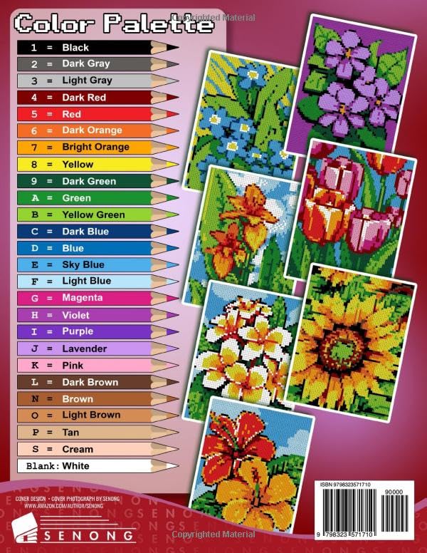 Welcome to the Floral Fantasy World of Mystery Mosaics Color by Number! Get ready to embark on a mesmerizing coloring journey through lush gardens and enchanting blooms with “Mystery Mosaics Color by Number Floral Fantasy”! This delightful coloring book features 40 intricately designed pixel art images of beautiful flowers, each waiting to be brought to life with your unique touch of color. Hidden Flowers and Color Quest Challenges: Uncover hidden flowers and unlock your creativity as you navigate through each page of this captivating book. With color-by-number guides and color quest challenges, every page offers a delightful blend of relaxation and excitement. Unique Features for Easy Coloring: One of the key highlights of this book is its consistent color scheme across all pages, making it Easy to tear out pages for comfortable coloring without losing track of the color guide inside. The numbers and letters on each square match the palette on the back cover, ensuring a seamless and enjoyable coloring experience. The squares filled with white will be left blank, with no numbers placed on them: This feature ensures that once the picture is completed, the white squares will be left blank without any numbers, resulting in a flawless final image Relaxing Designs for Stress Relief: Immerse yourself in the soothing world of floral beauty and let your worries fade away with each stroke of your colored pencil or marker. Whether you’re a seasoned colorist or just beginning your coloring journey, “Mystery Mosaics Color by Number Floral Fantasy” provides the perfect escape for relaxation and mindfulness. Perfect for All Ages and Skill Levels: Whether you’re a child or an adult, a beginner or an experienced colorist, this book offers something for everyone. Let your imagination bloom as you explore the vibrant world of floral pixel art. Ideal Gift: Looking for the perfect gift for a loved one? “Mystery Mosaics Color by Number Floral Fantasy” is an ideal choice! Whether it’s for a birthday, holiday, or just because, this coloring book is sure to bring joy and relaxation to anyone who receives it. Indulge in the Serenity of Nature – Start Coloring Today!
