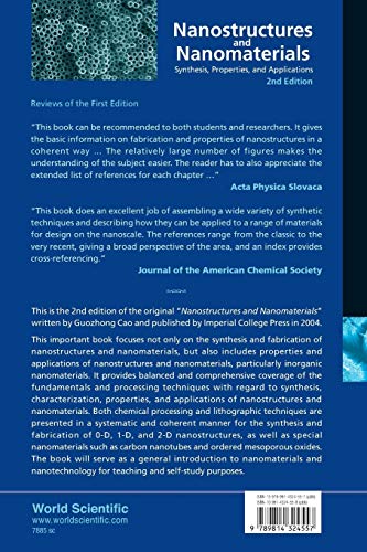 This is the 2nd edition of the original “Nanostructures and Nanomaterials” written by Guozhong Cao and published by Imperial College Press in 2004.This important book focuses not only on the synthesis and fabrication of nanostructures and nanomaterials, but also includes properties and applications of nanostructures and nanomaterials, particularly inorganic nanomaterials. It provides balanced and comprehensive coverage of the fundamentals and processing techniques with regard to synthesis, characterization, properties, and applications of nanostructures and nanomaterials. Both chemical processing and lithographic techniques are presented in a systematic and coherent manner for the synthesis and fabrication of 0-D, 1-D, and 2-D nanostructures, as well as special nanomaterials such as carbon nanotubes and ordered mesoporous oxides. The book will serve as a general introduction to nanomaterials and nanotechnology for teaching and self-study purposes.