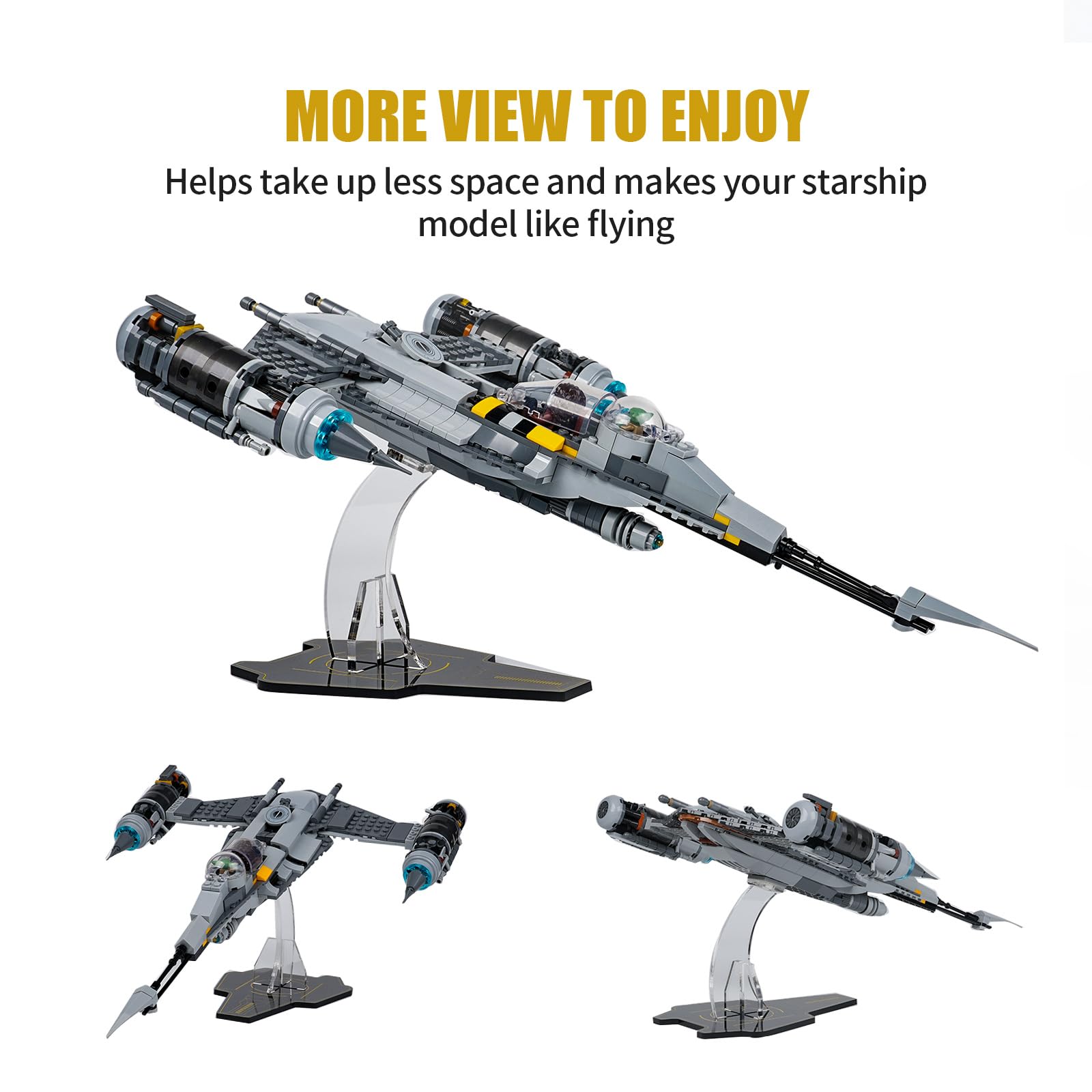 - [(Product Introduction)] NAOCARD Acrylic stand is specially designed for the Lego Star Wars The Mandalorian’s N-1 Starfighter 75325 Building Set. It can hold your model stable on your table to display and show your model in any view of sight.